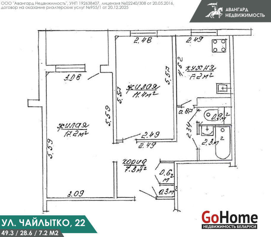 Предлагаем вам 2-комнатную квартиру общей площадью 49.3 м2, жилой – 28.6 м2, кухни – 7.2 м2 на 7-м этаже 10-этажного панельного дома 1996 года постройки в микрорайоне «Сухарево» на улице Чайлытко, 22.