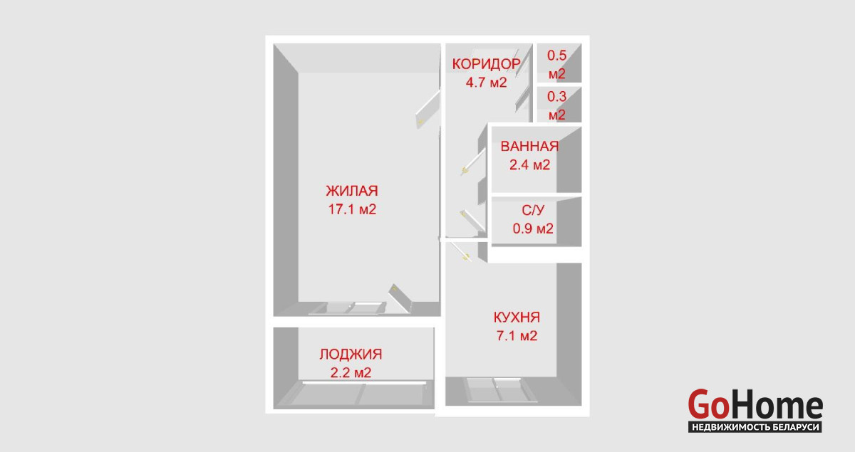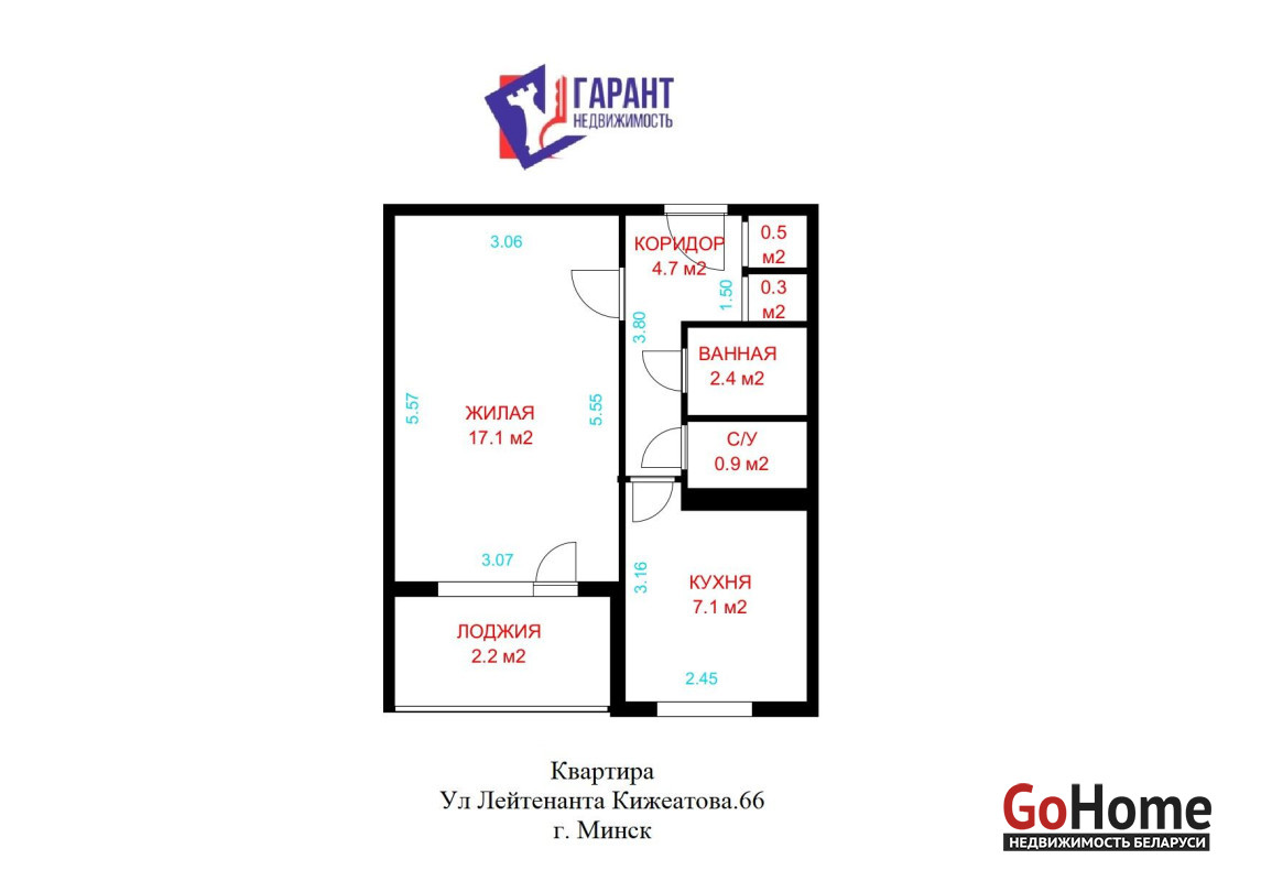 · Планировка: Удобное зонирование: жилая комната 17.1 кв. м, отдельная кухня 7.1 кв. м (достаточно места для обеденной зоны) и раздельный санузел.