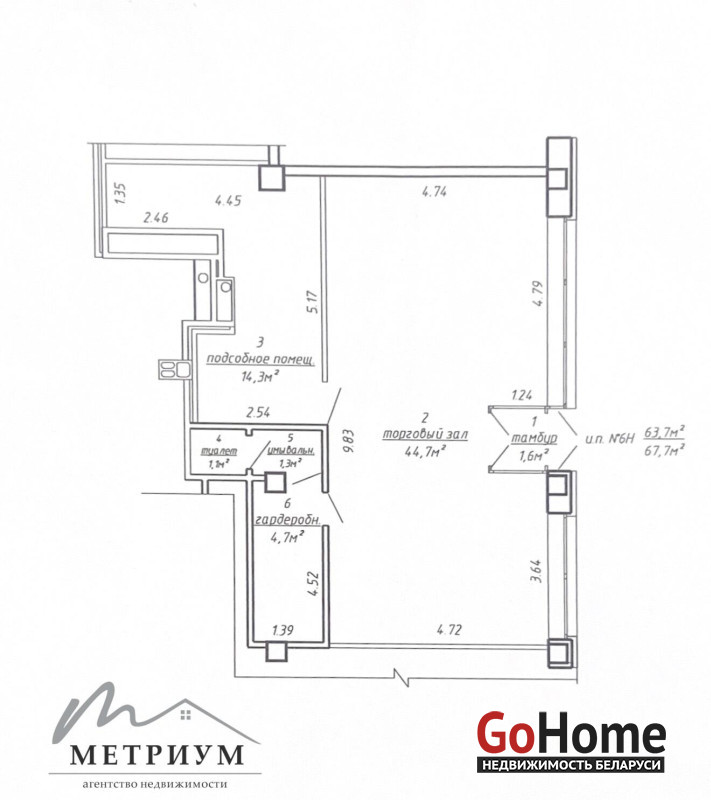 Помещение с отделкой включает в себя торговый зал общей площадью 61,9 кв.м., вспомогательное помещение, сан. узел. Функционирует электричество, центральное отопление, вентиляции, пожарная сигнализация, высокоскоростной интернет.