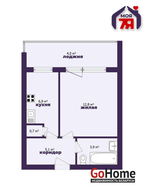 -Квартира расположена на 4 этаже кирпичного 5-этажного дома. Общая площадь составила 30 м2 - компактный, но функциональный формат, который отлично подойдет для молодой семьи.
