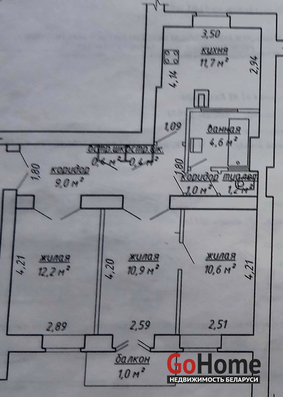 Общая площадь по СНБ 62 кв.м., жилая 33.7, кухня 11.7