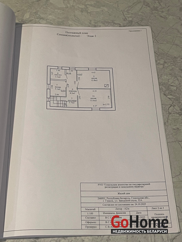 Дом кирпичный, имеется веранда. 2009 года постройки. Общая площадь жилого дома составляет 149,1 кв.м., жилая площадь – 87,8 кв.м. В цокольном этаже расположен подвал с выходом на улицу на задний двор. На первом этаже расположены: кухня-гостинная площадью 29,4 кв.м., с камином; сантехнический узел – 3,3 кв.м., коридор - 9,4 кв.м.; тамбур - 12,5 кв.м.; веранда. На втором этаже расположены: три спальни, площадью 12,8 кв.м., 12,6 кв.м. и 5,1 кв.м. (спальню 5,1 кв.м. можно переоборудовать под гардеробную комнату), ванная комната – 3,3 кв.м., холл (коридор) – 8,2 кв.м. Имеется чердак.