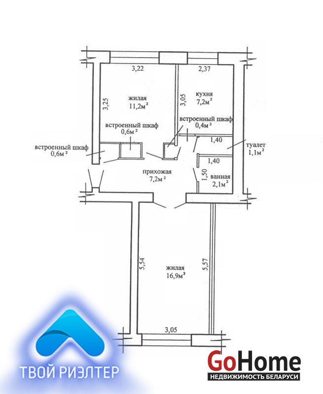 - стандартная планировка квартиры площадью 47,3 кв.м;