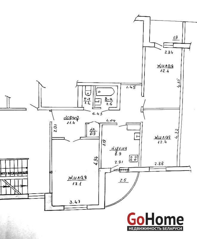 Общая площадь по СНБ 71.3 м2, общая площадь 66.9 м2 , жилая 41,9м2, кухни 8,9м2, высота потолков 2,60м2