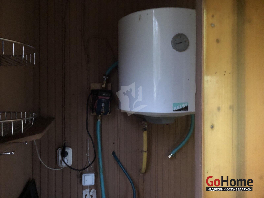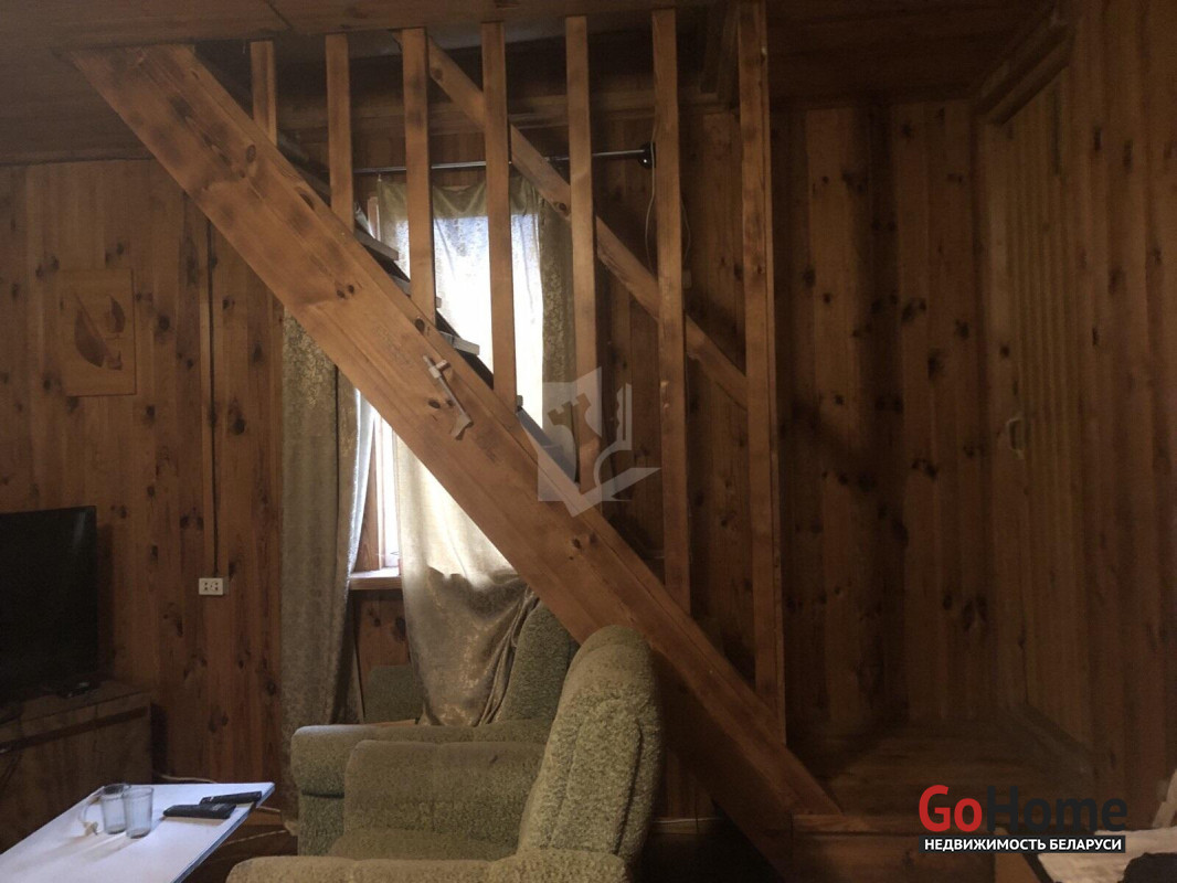 Дом каркасный, внутри отделан натуральным деревом. В доме три комнаты, кухня. Есть просторный гараж.