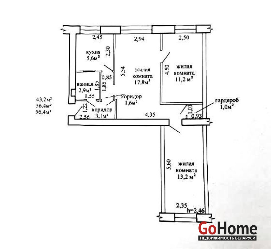 БЕЗ БАЛКОНА. Общая площадь 56,4 / жилая 56,4 / кухня 5,6. Квартира без ремонта. В квартире остаётся мебель. Дом находится в тихом и уютном местечке, в 2 минутах ходьбы остановка общественного транспорта. До Центра города две остановки.