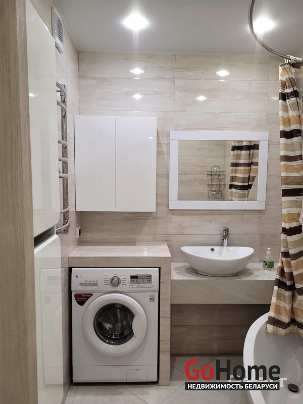 Квартира отличается индивидуальными дизайнерскими решениями: утеплённая лоджия, полы с плиткой и подогревом, ламинат в спальне и натяжные потолки. В кухне установлен кондиционер. Кладовая площадью 6,3 м2, расположенная на лестничной клетке, также оборудована плиткой с подогревом, радиатором и натяжным потолком, а стены отделаны декоративной штукатуркой. При продаже остаётся вся мебель и техника, что делает квартиру готовой к заселению. Район обладает развитой инфраструктурой, что делает это предложение особенно привлекательным для комфортного проживания.