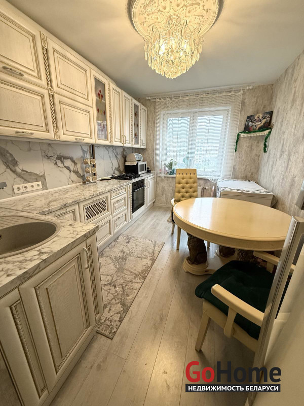 Квартира с ремонтом в классическом стиле, входная металлическая дверь, на полу ламинат и плитка, встроенный кухонный гарнитур из массива производства ЗОВ. Встроенные шкафы. Раздельный санузел облицован плиткой. Остекленная лоджия. Хороший развитый район. Рядом магазины, остановки общественного транспорта, школы и сады.