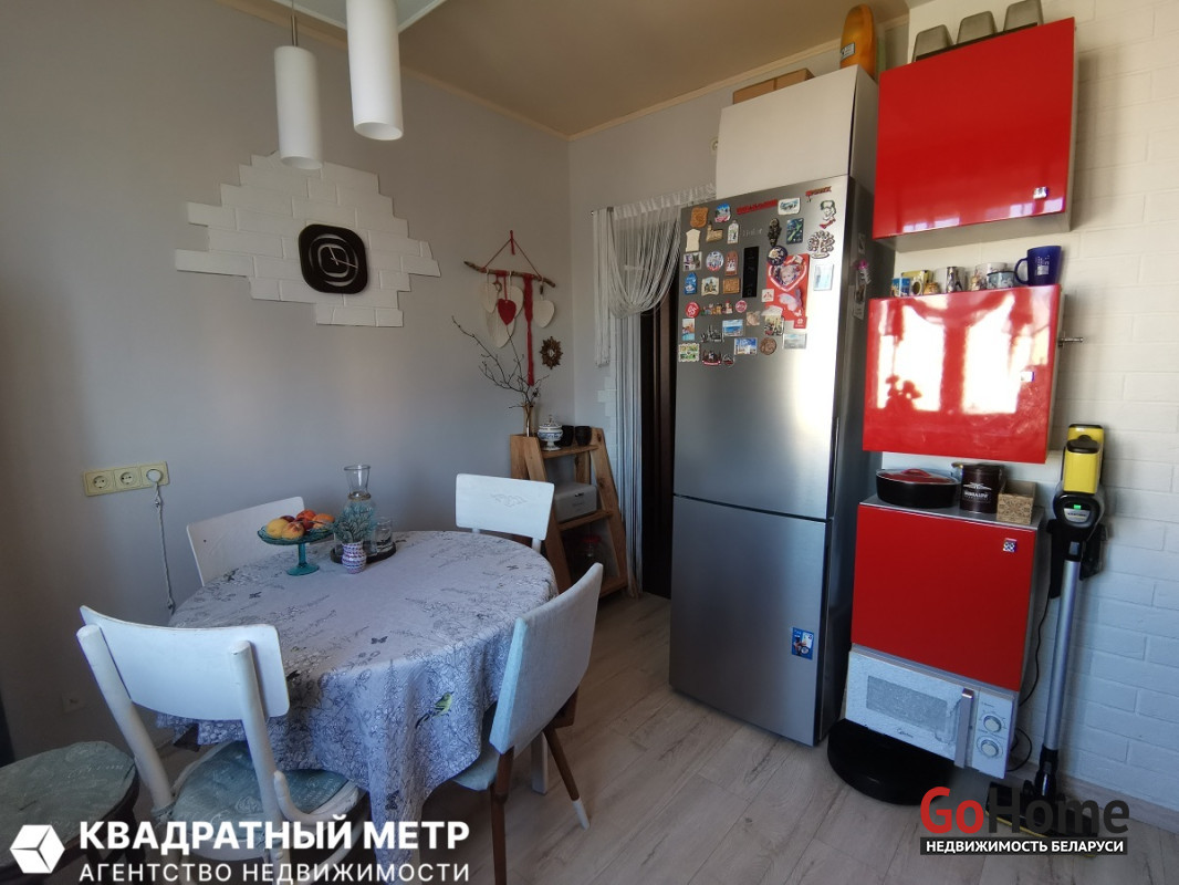 Развитая инфраструктура. В шаговой доступности всё необходимое для жизни: ТЦ Green City в нескольких минутах от дома, продуктовые (Дионис, Евроопт, Соседи и другие) и бытовые магазины, поликлиники, медицинский центр, школы и гимназии с высоким рейтингом, множество детских садов, аптеки, банки, кафе и множество других объектов. В 5 мин ходьбы от дома парк им. Уго Чавеса - места для прогулок, велодорожка, аттракционы. Возле дома - сквер. Парк с озером и питьевым фонтаном, прогулочные дорожки.