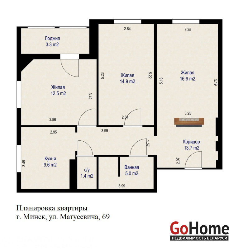 Продается просторная 3-комнатная квартира по ул. Матусевича, 69.
