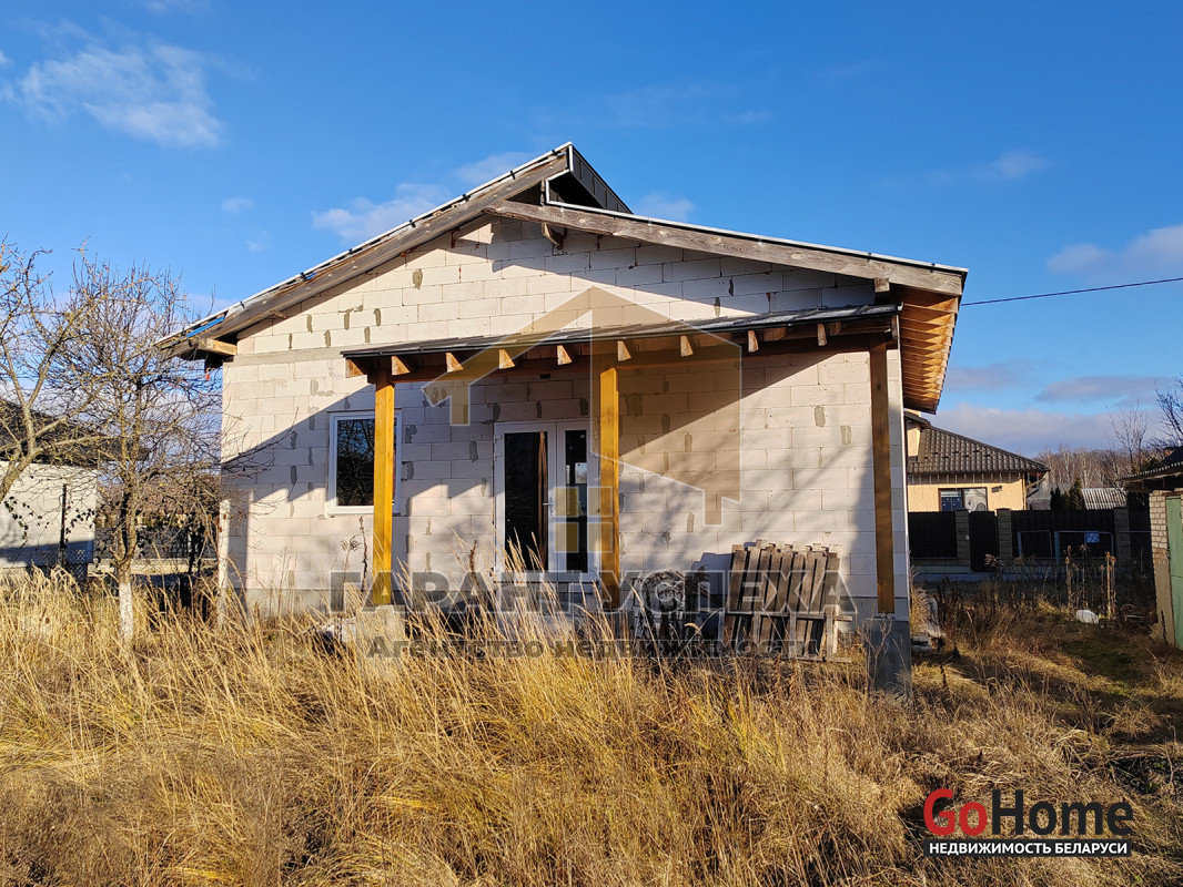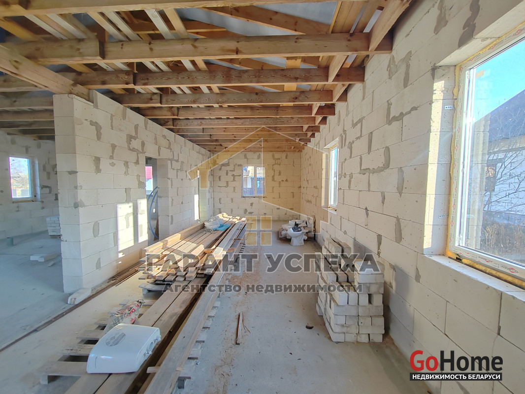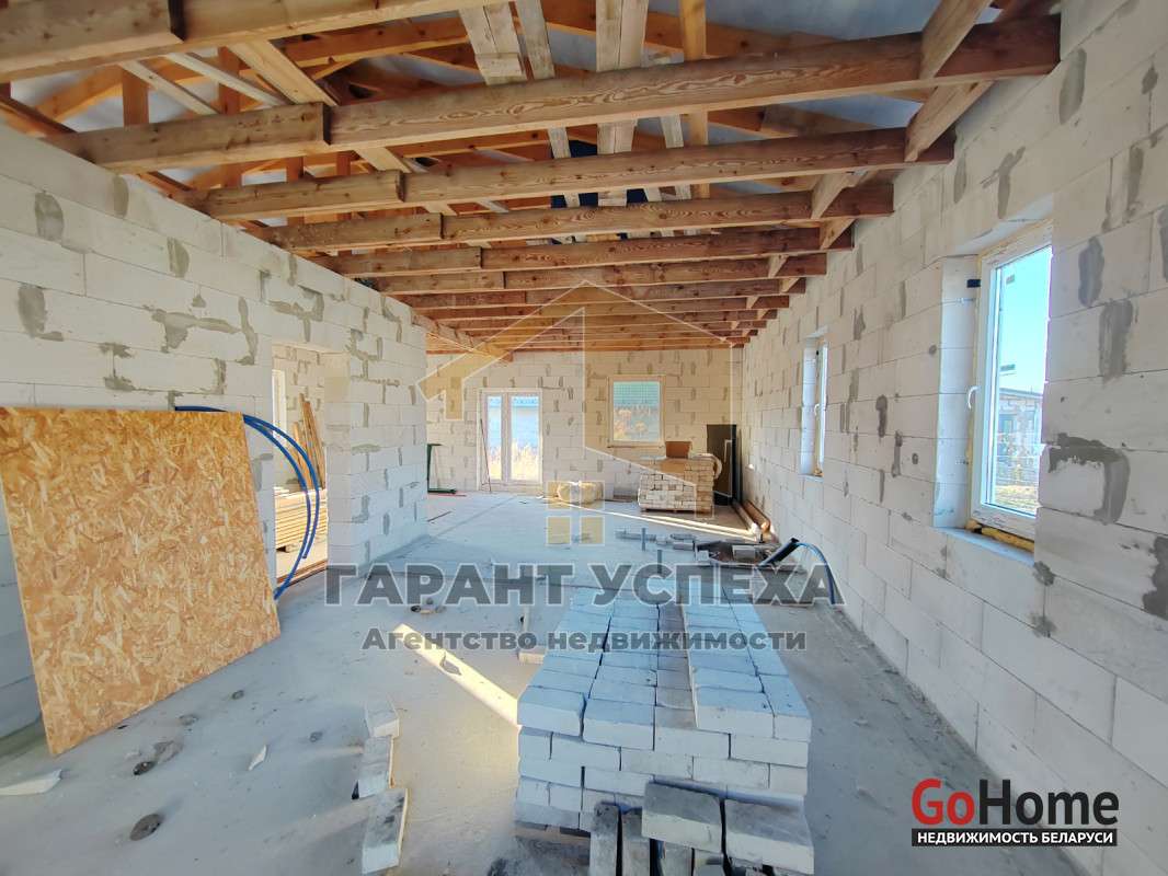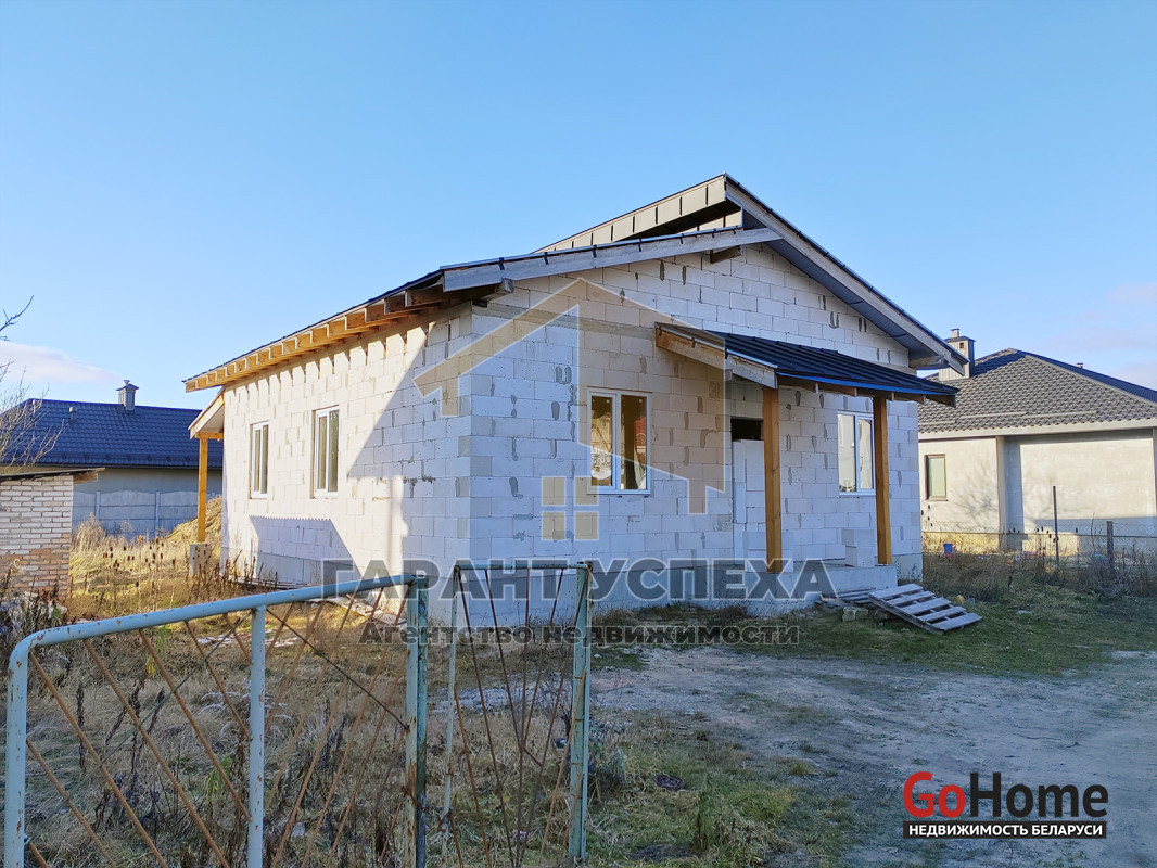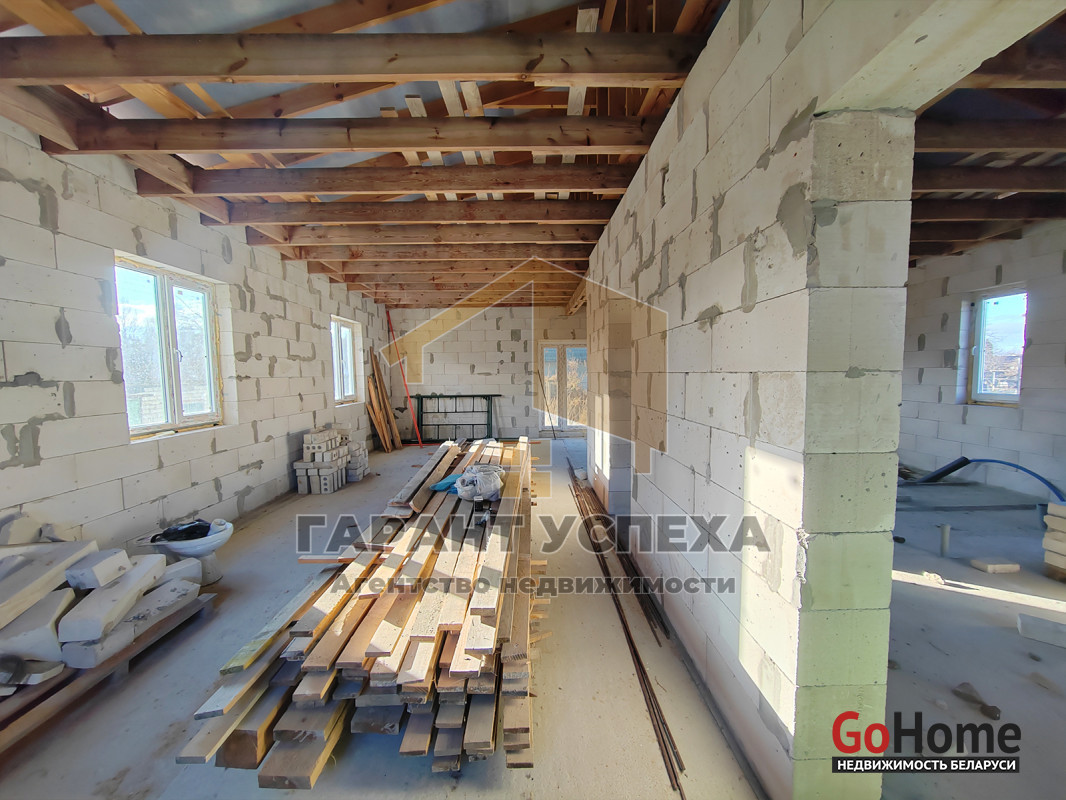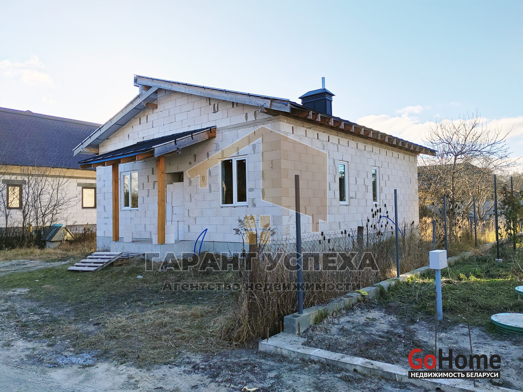 Здание общей площадью 81,6 кв.м имеет ленточный армированный монолитный фундамент, стены выведены из газосиликатных блоков и накрыты фальцевой кровлей. На полу залита черновая бетонная стяжка, внутри проведена разводка канализации. В доме установлены окна ПВХ .