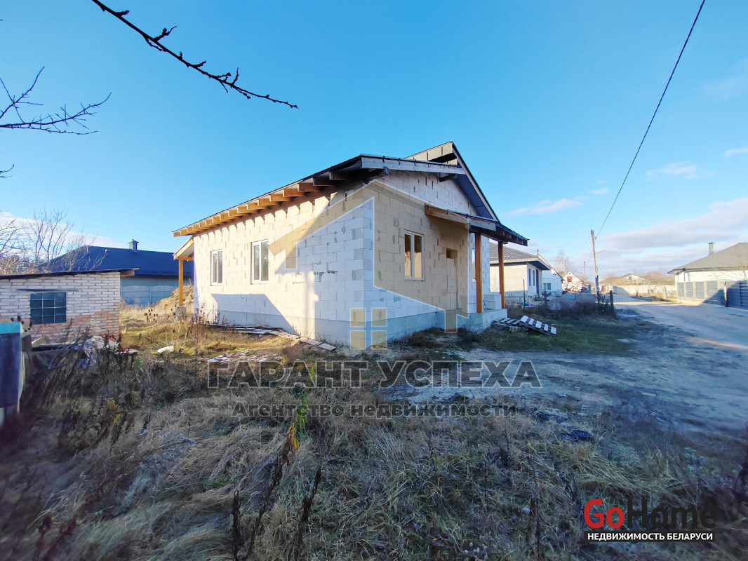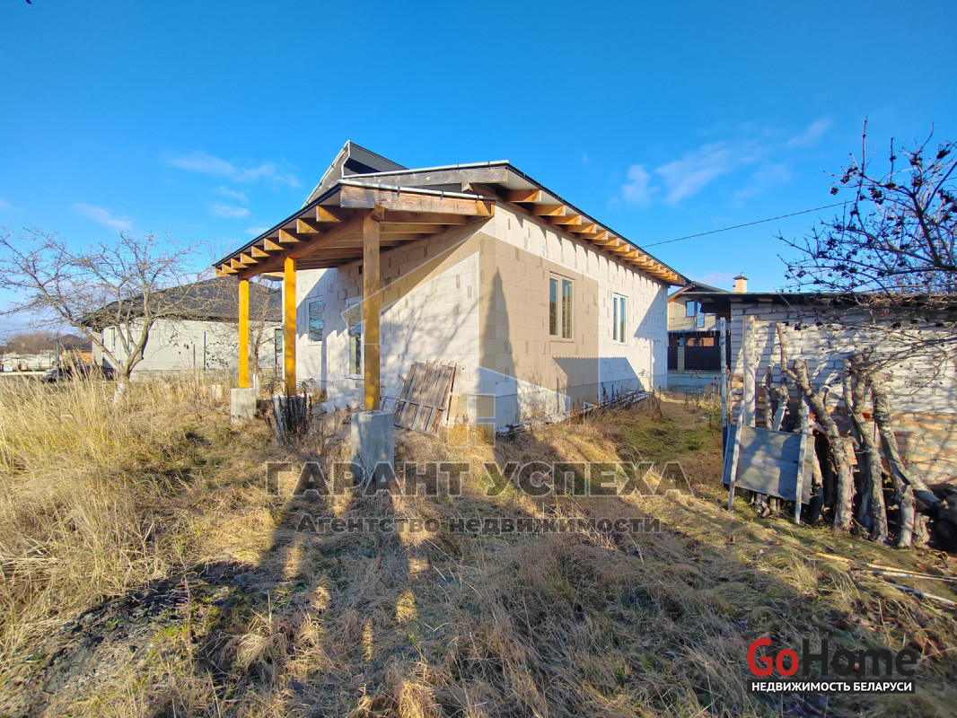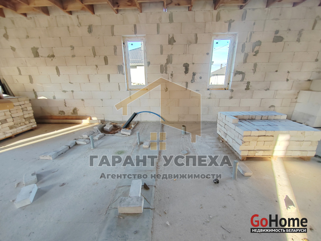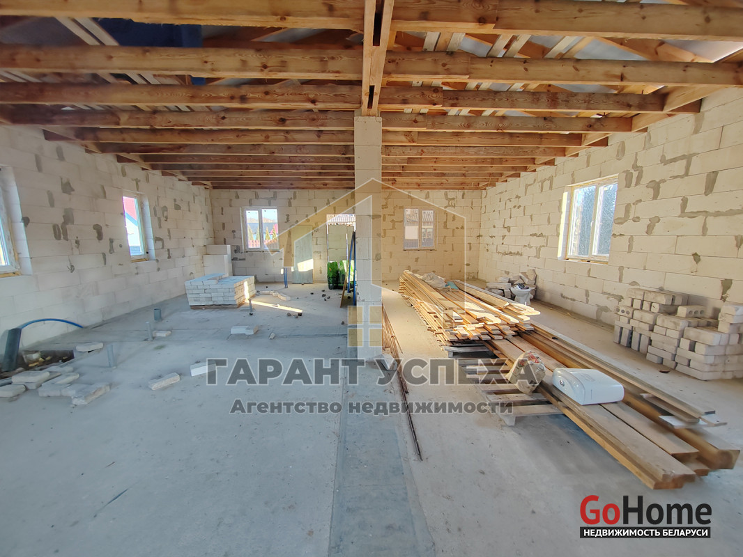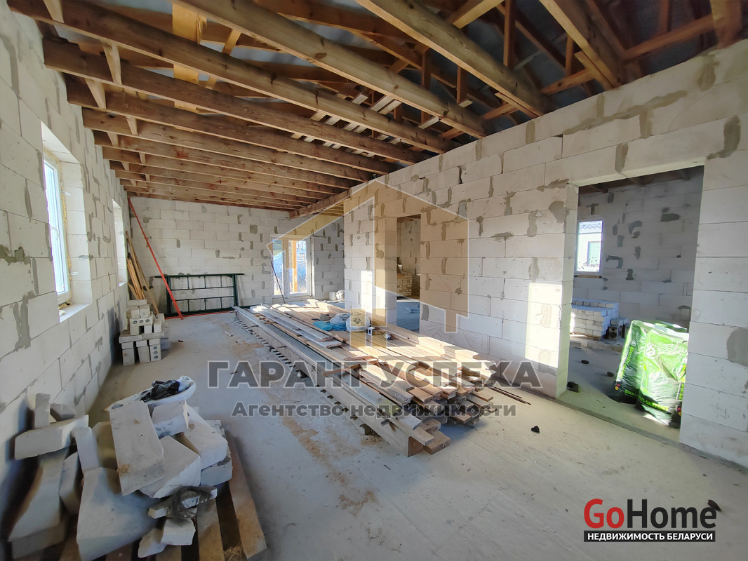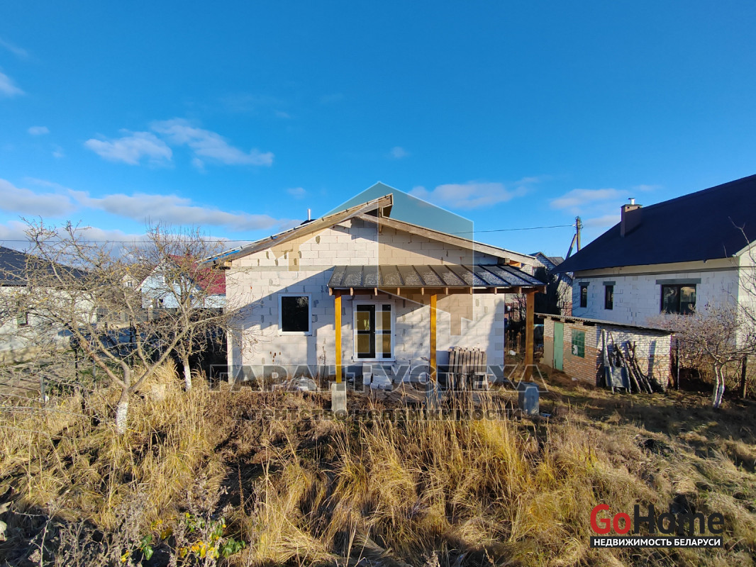 Здание общей площадью 81,6 кв.м имеет ленточный армированный монолитный фундамент, стены выведены из газосиликатных блоков и накрыты фальцевой кровлей. На полу залита черновая бетонная стяжка, внутри проведена разводка канализации. В доме установлены окна ПВХ .
