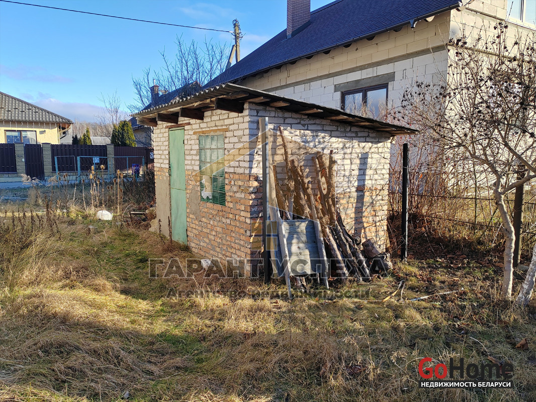На участке помимо коробки дома расположены кирпичная хоз постройка и улицный туалет.