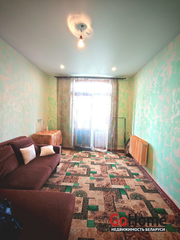 В комнате есть шкаф. Стены декоративная штукатурка.