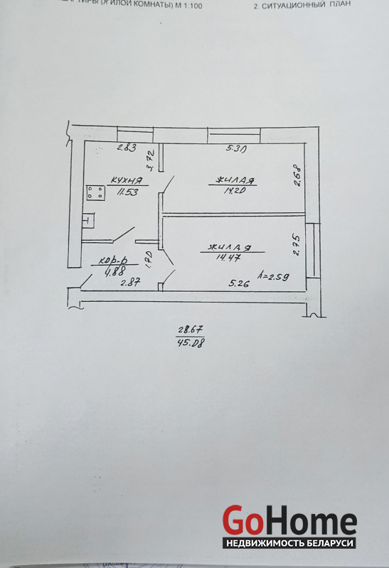 Продается 2-комнатная квартира на 2 этаже двух этажного дома.
