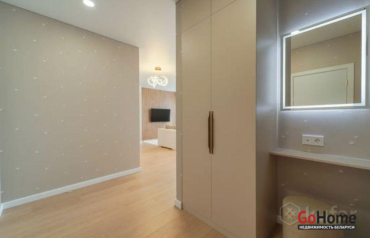 В квартире выполнен качественный ремонт. Есть вся необходимая мебель для комфортного проживания, вся техника новая (телевизор, посудомойка, СВЧ, духовой шкаф, холодильник, плита). Имеется кондиционер. Оборудована просторная гардеробная