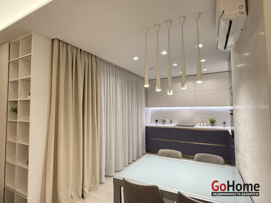 Развитая инфраструктура. Рядом находятся крупные торговые центры («Арена-Сити», «Замок»), спортивные объекты («Минск-Арена», футбольный манеж, теннисные корты), медицинские учреждения, школы, детские сады, аптеки и банки.