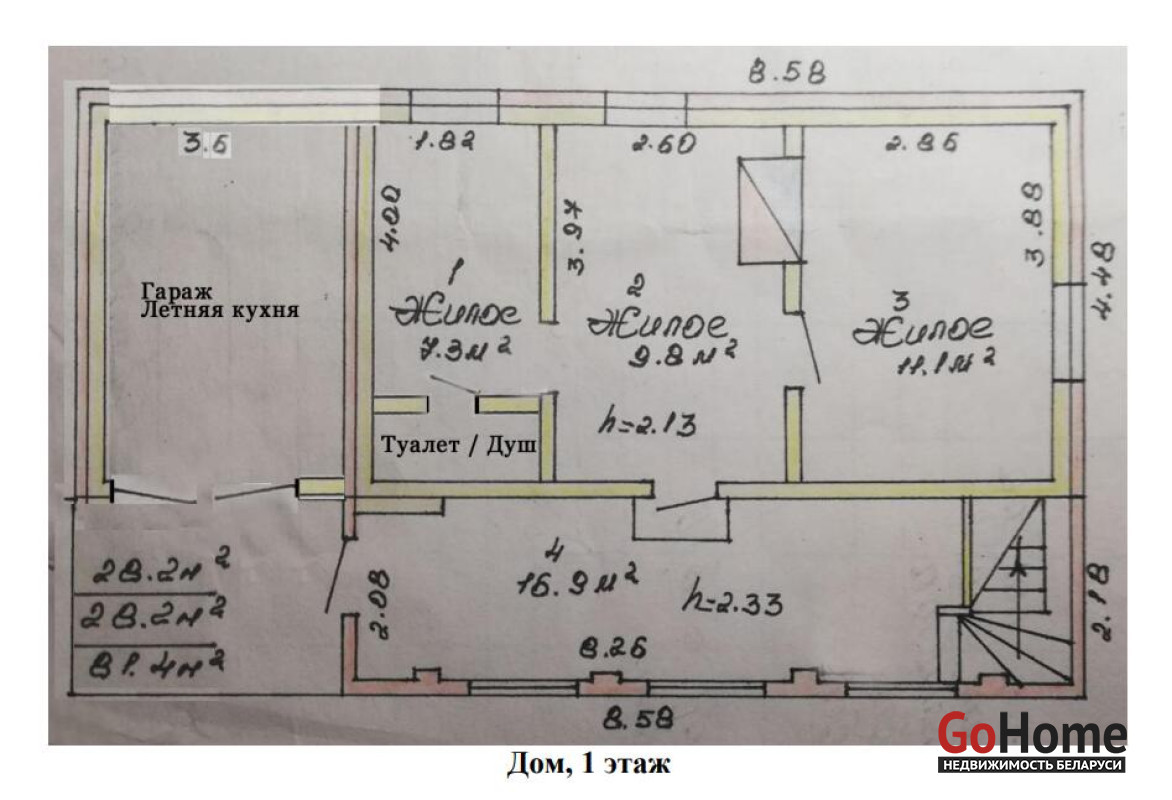 Предлагается двухэтажный деревянный дом площадью 93,44 м2, расположенный на участке в 25 соток. Участок оформлен с ПНВ и предоставляет возможность использования неограниченного количества плодородной земли для огорода и сельскохозяйственных культур в близлежащем массиве.Дом отличается хорошей теплоизоляцией благодаря новой крыше с двойным перекрытием, утепленной минеральной ватой, а также деревянным стенам, обложенным силикатным кирпичом и оштукатуренным снаружи. Внутренние стены обшиты силикатным блоком и гипсокартоном, потолки выполнены из гипсокартона с встроенным освещением, а все помещения оформлены высококачественными моющимися обоями. Жилая площадь составляет 63,2 м2 зимой (отапливаемая) и 96,9 м2 летом (отап.+неотап.). Новая электропроводка, центральное водоснабжение и канализация с двумя колодцами. Установлен бойлер на 30 литров для подогрева воды, душевая совмещенная с туалетом, а также блочный с/у на улице.На территории участка находятся доп. постройки: баня (50,4 м2) с сухой парилкой и моечной комнатой, два гаража (пристроенный к дому на 18,8 м2 и отдельно стоящий на 23,7 м2), склад-кладовка (15 м2), склад-сарай (20 м2), погреб (6,66 м2) и курятник (6 м2). Для водоснабжения в доме имеются три независимых источника: центральное водоснабжение, собственная скважина с гидрофором и два колодца с чистой водой. Окна в доме и бане оборудованы стеклопакетами. Участок полностью огорожен бетонно-каменным забором с одной стороны и металлической сеткой с остальных сторон.