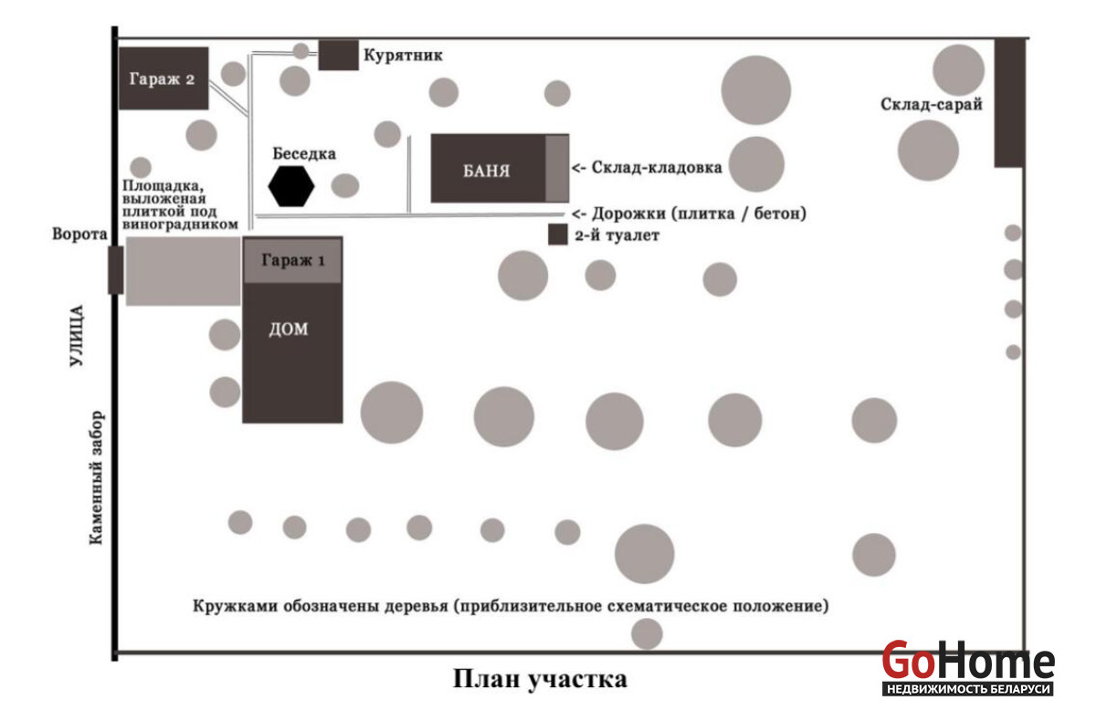 На участке также располагаются удобный непромерзаемый погреб для хранения закаток, три больших сухих чердака для хранения вещей, блочный курятник на 30 курей, теплица-парник и два склада-сарая для хранения дров и инвентаря. Гаражи могут использоваться как летняя кухня, в которой установлен газ и проведена вода. Баня представляет собой небольшой жилой комплекс с парилкой, ванно-мытьевой комнатой, большой застекленной верандой-гостиной и просторной спальней для гостей. Установлен бойлер на 50 литров для подогрева воды.Дом и баня полностью мебелированы и готовы к проживанию. В наличии большой запас нового постельного белья, качественной посуды и кухонного инвентаря. Здесь имеются две шикарные двухспальные кровати с ортопедическими матрасами и два больших шкафа-купе.Участок отличается высокоплодородными почвами и месторождением белой-голубой глины для лечебных и ремесленных целей. В саду растут яблони разных сортов, вишня, черешня, груши, сливы, абрикосы, алыча, айва, орешник, рябина, кусты малины и смородины (черной и красной), а также голубика. Виноградник включает два сорта винограда: темно-синий и розовый сладкий с общим урожаем около 200 кг. На участке также растут два больших дерева грецкого ореха с урожаем около 100 кг.Прямо на участке растут две ели и большая береза для получения березового сока. В саду поют соловьи, слышен колокольный звон из соседней деревни Волчин. Это место отличается тишиной, чистым воздухом и удивительным теплыми вечерами. Для приятного времяпрепровождения есть новая беседка с большим столом для обедов или приема гостей.В доме протянута телефонная цифровая линия, есть скоростной интернет и WiFi, сетевой кабель проведен в каждую комнату. Мобильная связь всех белорусских операторов стабильна для видео- и онлайн-трансляций, также доступна связь польских операторов.В близости от дома находятся леса, богатые грибами и ягодами. Это идеальное место для охоты на диких животных. Рядом расположен рыболовный пруд и живописная река Пульва.В радиусе 12 км находится Высоковское Лесничество, обеспечивающее дровами, а в соседних деревнях расположены лесопилки с доступными строительными материалами. Торговая сеть включает автолавку, доставку БелПочтой, а также м
