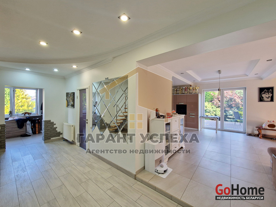 Общая площадь ~ 170 кв. м, жилая ~ 110 кв. м, кухня - гостиная - 47,1 кв. м с выходом на террасу. Две жилые комнаты на первом этаже по 15,7 кв. м. Высота потолка 2,8 м. Мансардный этаж фактически является одним большим помещением с возможность разделения на 2 независимых помещения.