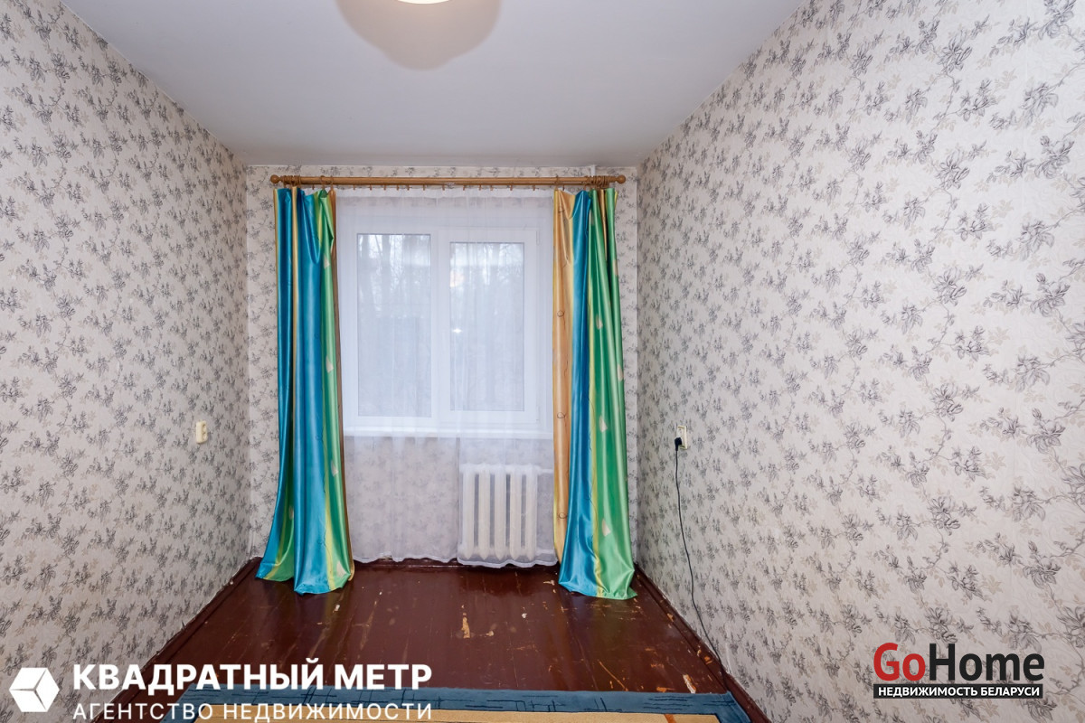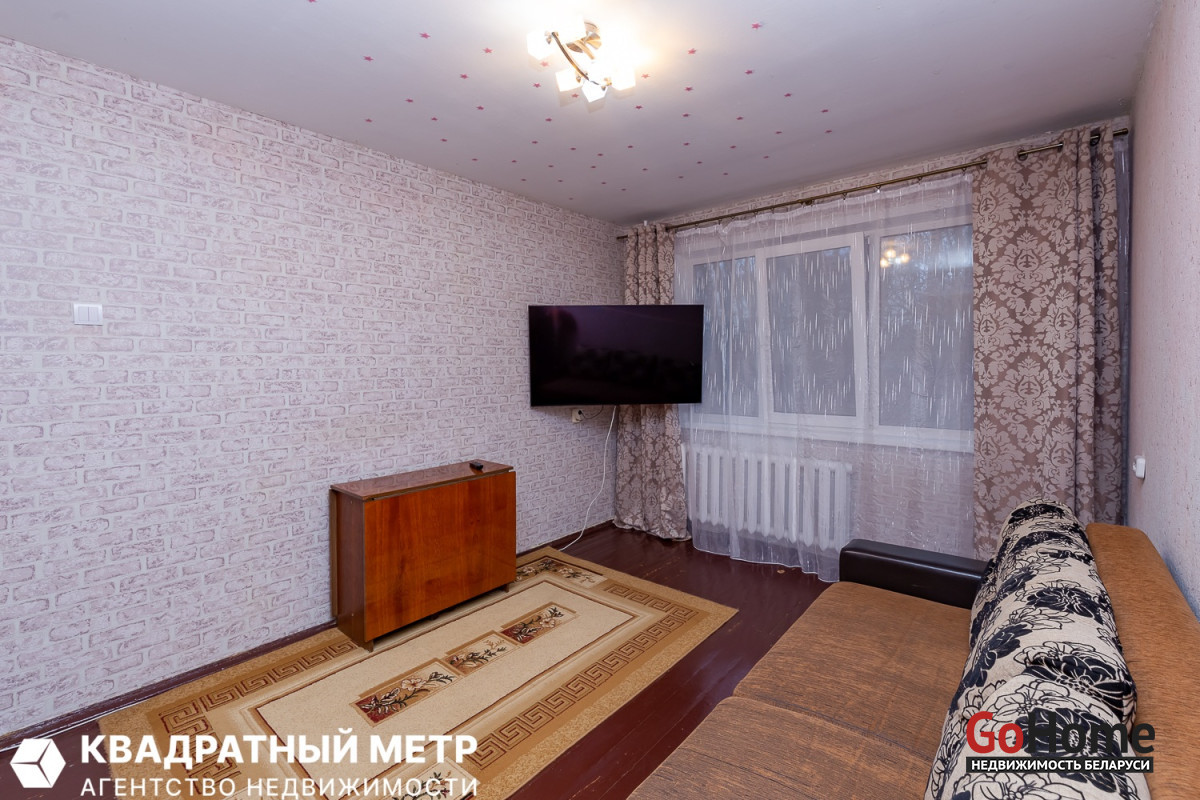 Продаётся 2-х комнатная квартира с удовлетворительным ремонтом в Минске – Первомайский район, ул. Седых, дом 60, на 1-ом этаже 5-ти этажного панельного дома. Квартира не угловая по расположению дома 1967 года постройки. Дом утопает в зелени насаждений. До метро Восток – 3 остановки общественным транспортом.