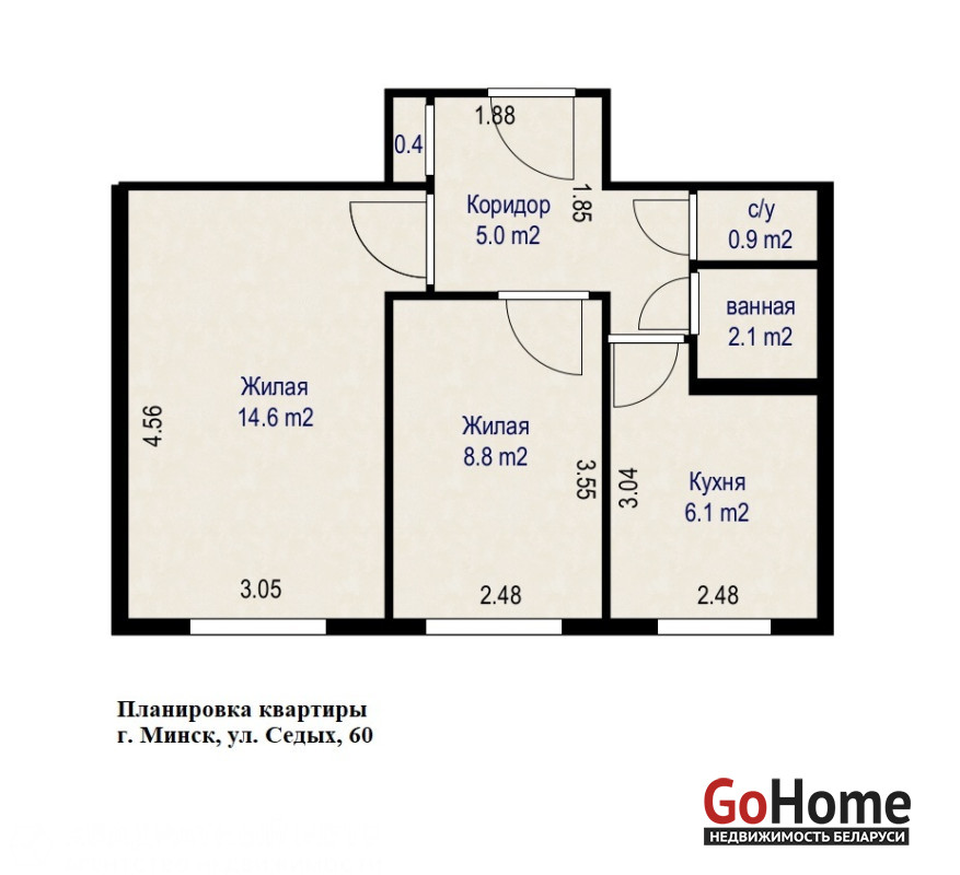 - Жилые раздельные комнаты: 14,6 кв.м. и 8,8 кв.м.