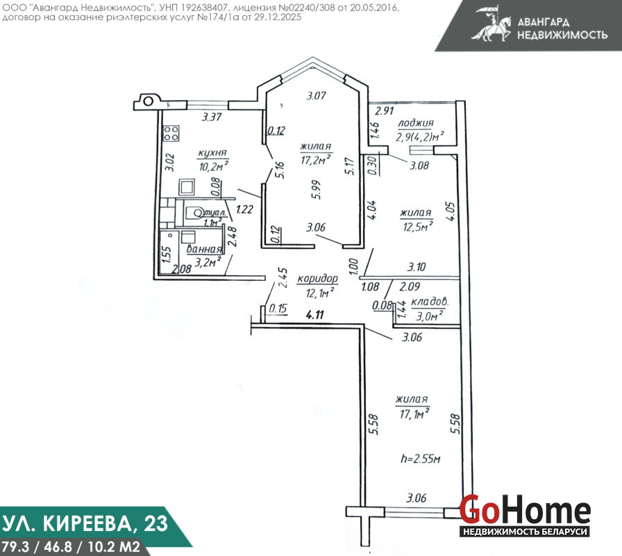 Квартира на 3-ем этаже -9-ти этажного дома.