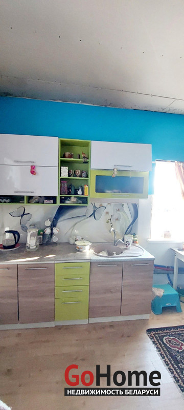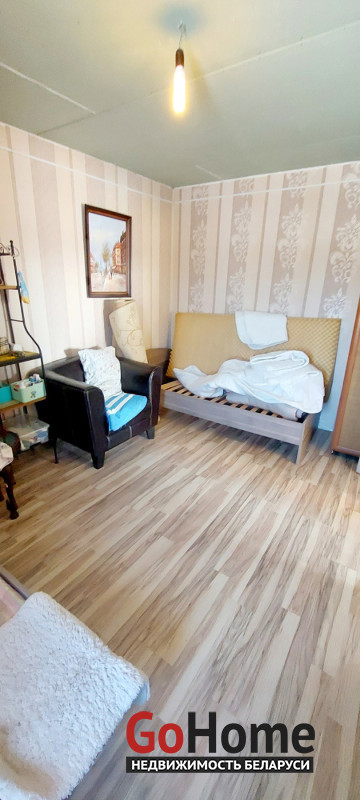 Стены отштукатурены, зашиты гипсокартонными листами, потолки подшиты досками. Полы облицованы керамической плиткой , в спальне дощатый, ламинат.