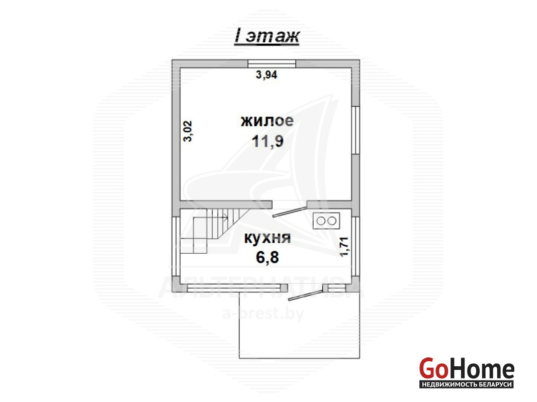 Садовый домик в Брестском р-не. 1995 г.п. 1 этаж, мансарда. Общ.- 31,0 кв.м. 1 комната.