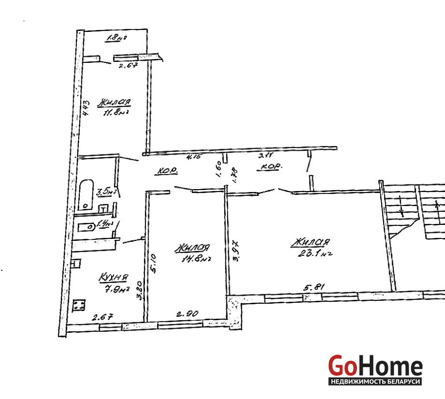 6 этаж 9-тиэтажного дома 1997 года постройки, материал стен – панель. Общая площадь 78.4 кв.м., жилая 49.7 кв.м., кухня 7.9кв.м. Окна – ПВХ. Сан. узел раздельный, облицован плиткой. Материал полов – паркет, керамогранит.