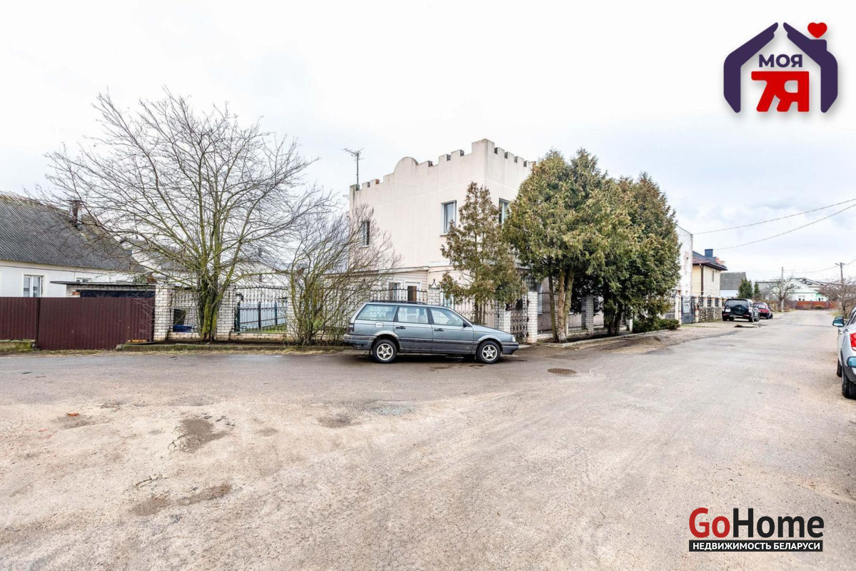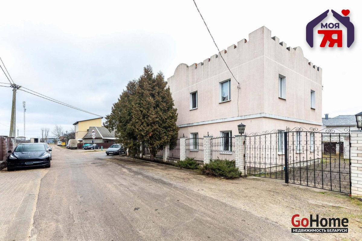 -Просторный двухэтажный кирпичный дом 1995 года постройки с оригинальным дизайном – фасад с элементами замковой архитектуры делает его особенным и выделяет среди других построек.