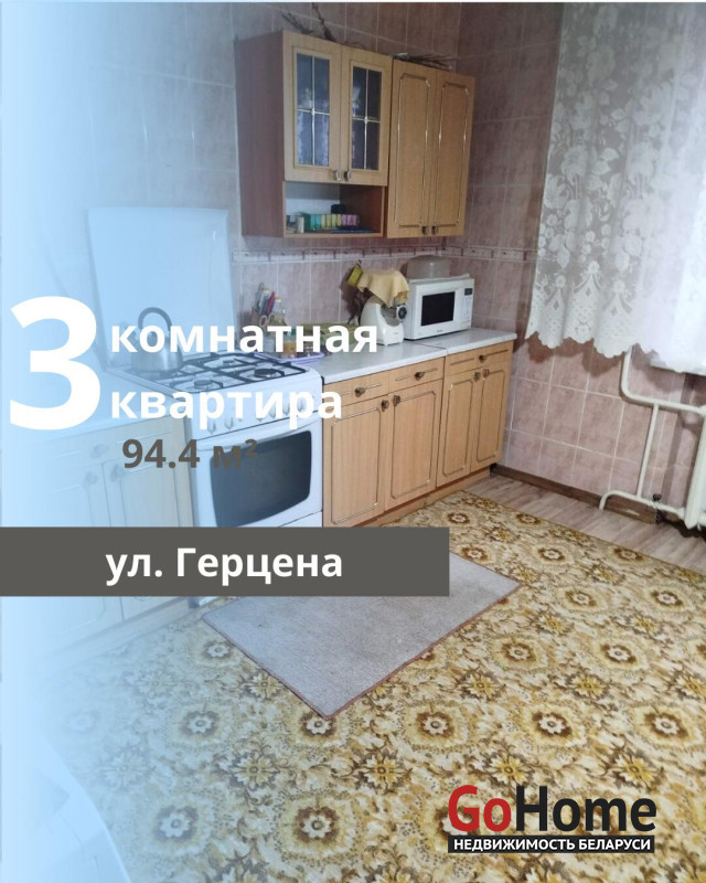 Подписывайтесь на наш instagram @ecrzby для удобного слежения за новыми актуальными объектами.Продаётся тёплая 3-х комнатная квартира на 4 этаже 5-ти этажного кирпичного дома, построенного в 2000 году, по адресу ул. Герцена, Киевка. Общая площадь квартиры составляет 94.4 м2, жилая - 53.2 м2, кухня - 13.9 м2. Квартира имеет улучшенную и просторную планировку, не является угловой, окна выходят на две стороны, что обеспечивает хорошее освещение. В квартире один застекленный балкон, косметический ремонт и раздельный санузел. Также имеется отдельная кладовая и подвал. Подъезд аккуратный, соседи доброжелательные. Район обладает развитой инфраструктурой: в шаговой доступности находятся магазины, аптека, мини-рынок, школы и детские сады. Удобное транспортное сообщение позволяет легко добраться до всех микрорайонов города Бреста.