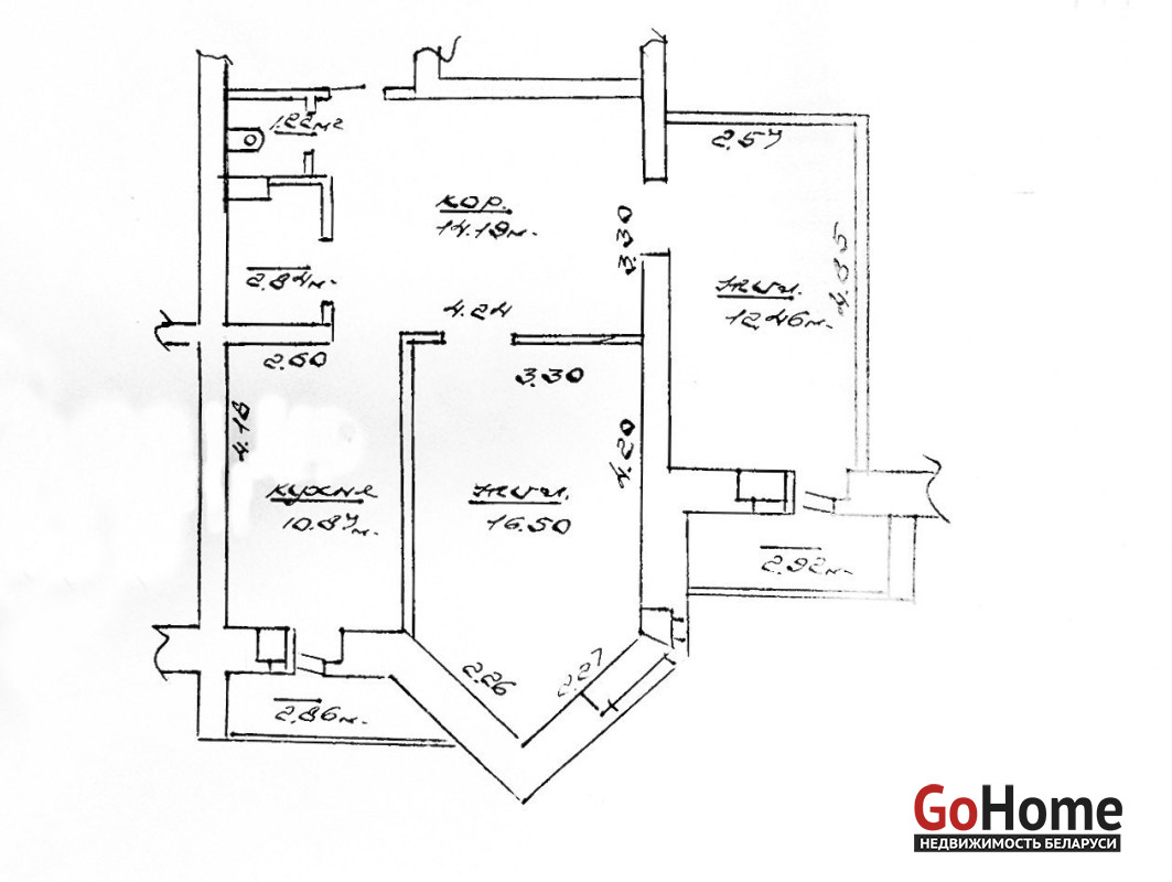 кв.м (без учета площади лоджий). Включает: площадь жилых комнат - 16,50 кв.м. и 12,46 кв.м., прихожая - 14,19 кв.м., кухня - 10,87 кв.м., ванная комната - 2,84 кв.м., санузел - 1,22 кв.м, две лоджии - 2,92 кв.м. и 2,86 кв.м. Высота потолков -2,50 (см.фото тех. паспорта).