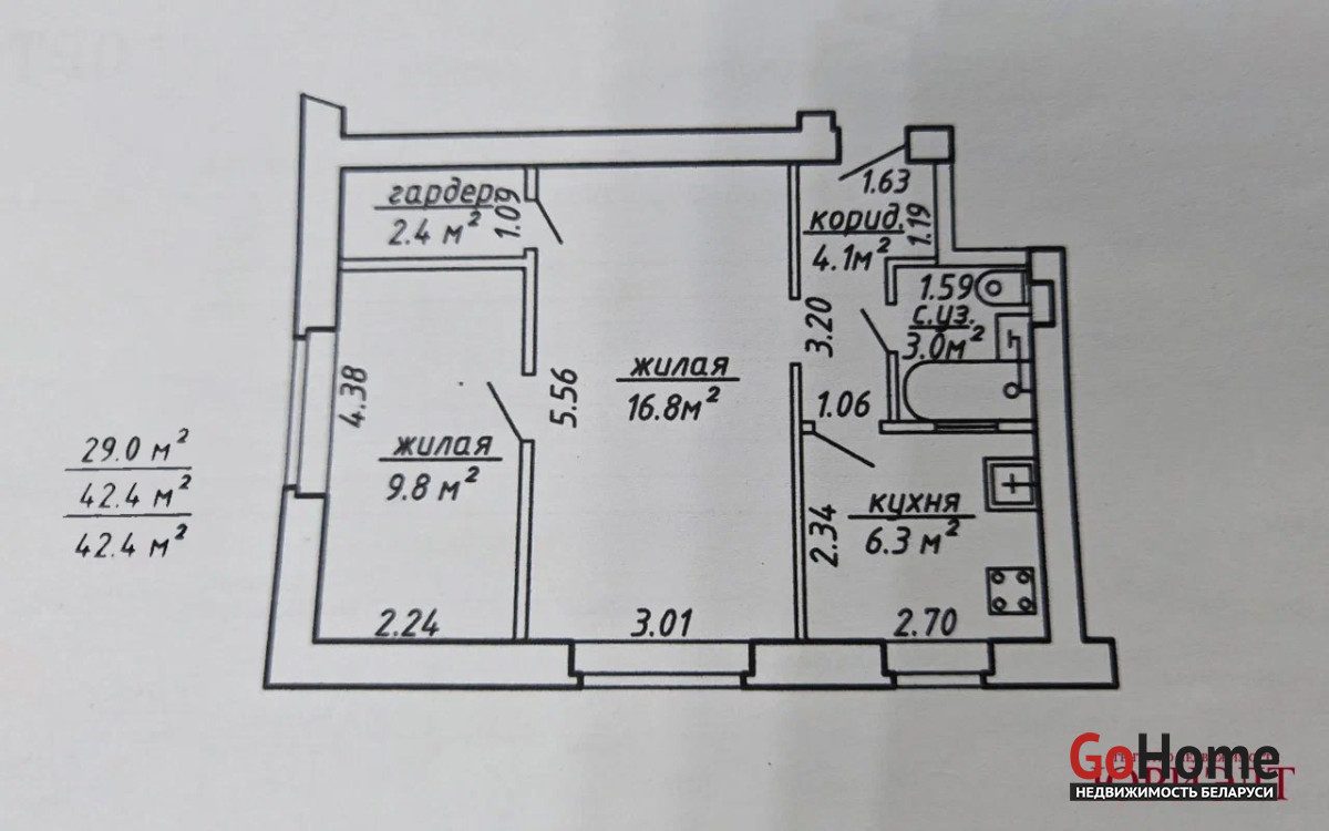 В продаже двухкомнатная квартира по улице Космонавтов-1.