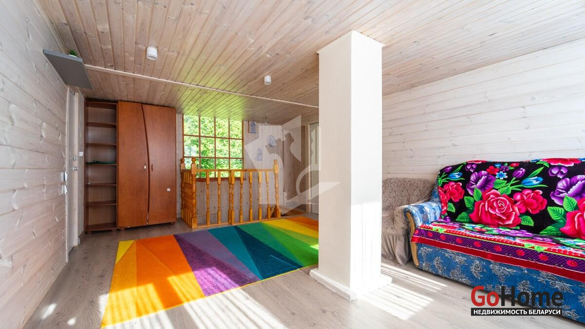 Дом очень теплый и светлый. Хороший бетонный фундамент, крыша из шифера. В доме установлены качественные окна(стеклопакеты). Во всем доме стены, пол и потолок из натурального дерева, обработанного пропиткой и лаком, отличного качества, полы не скрипят. Лестница крепкая из натурального дерева . Дом подходит как для дачного типа, так и для круглогодичного проживания.