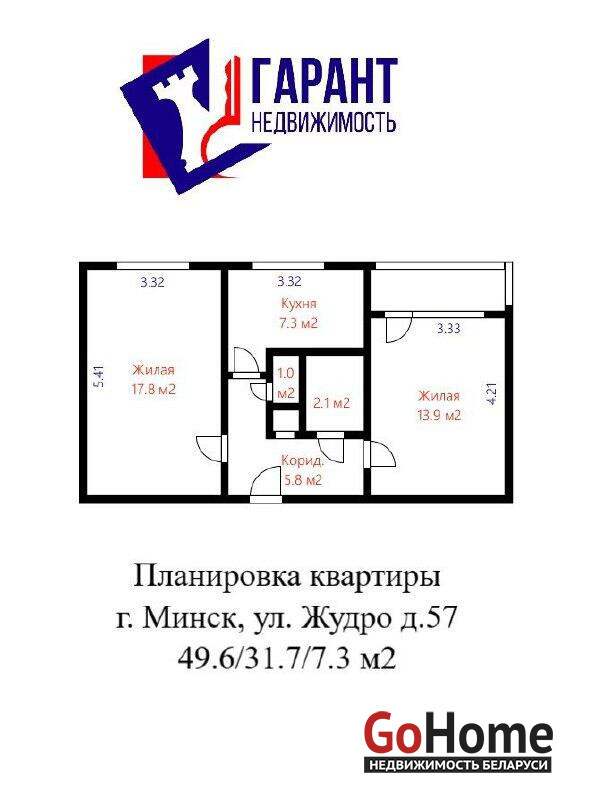 · Площадь комнат: 13,9 кв.м и 17.8 кв.м (раздельные).