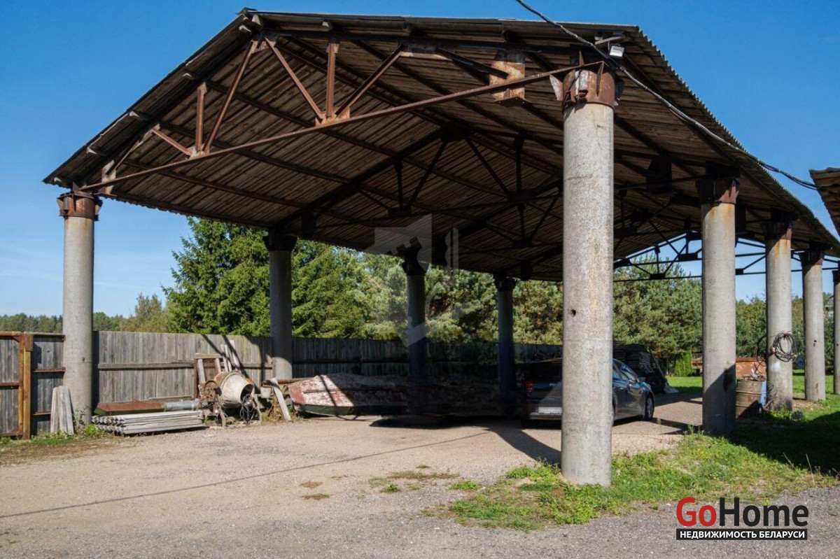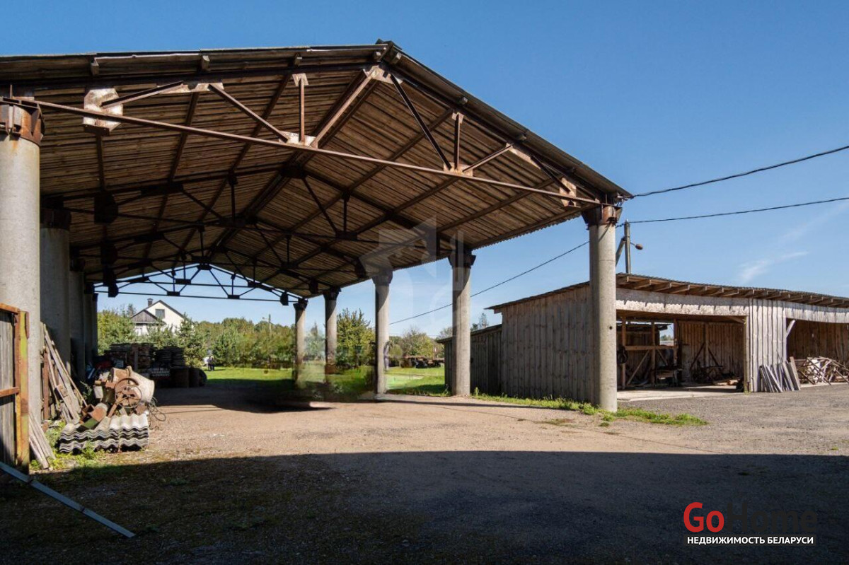 Высокий навес на 8 колоннах : может использоваться для хранения сельхозтехники, дров, стройматериалов или как место для будущего летнего кафе/зоны отдыха при агробизнесе.