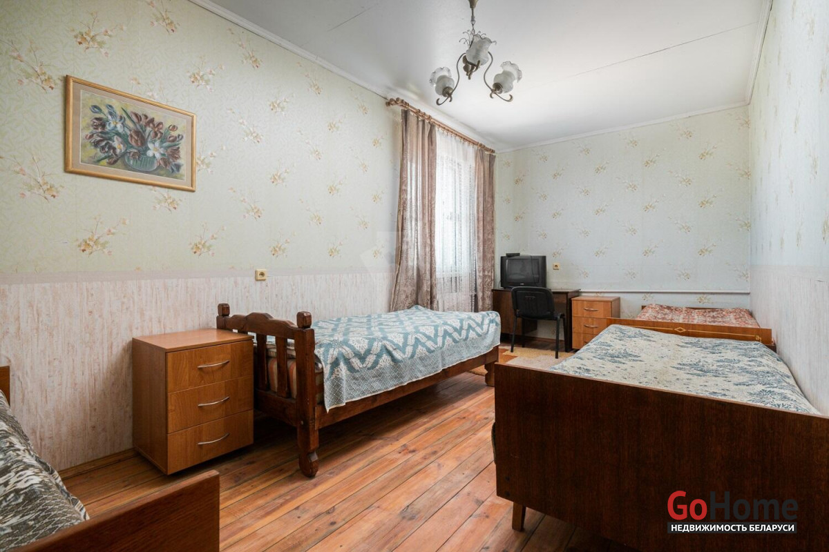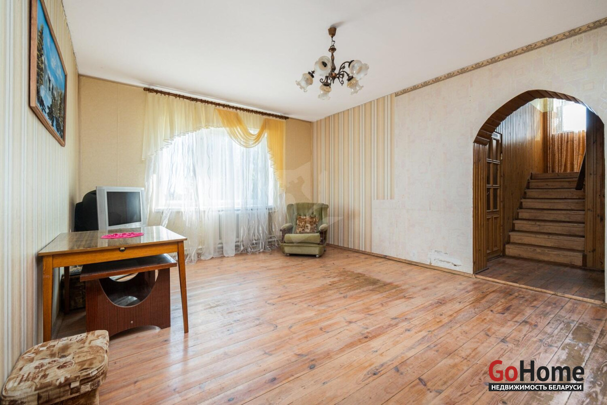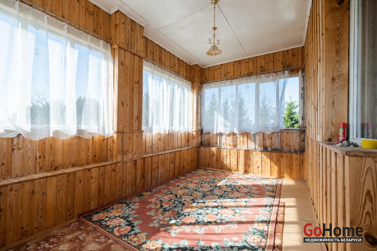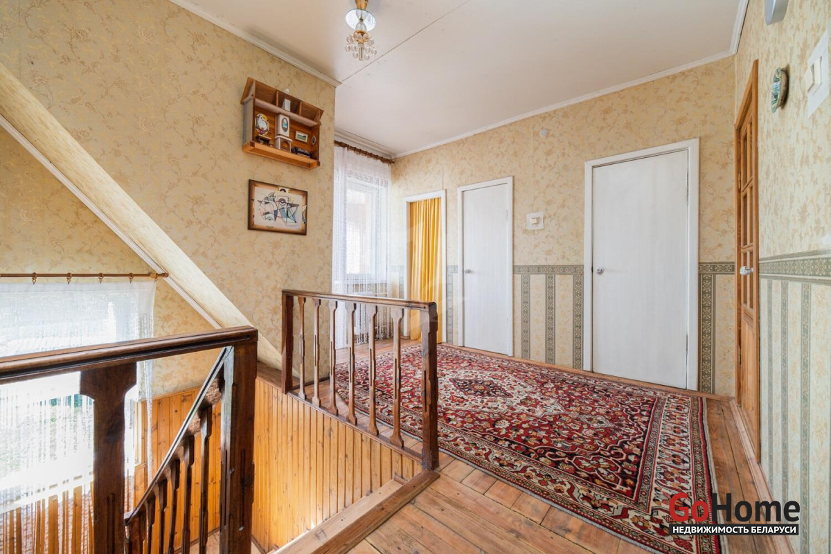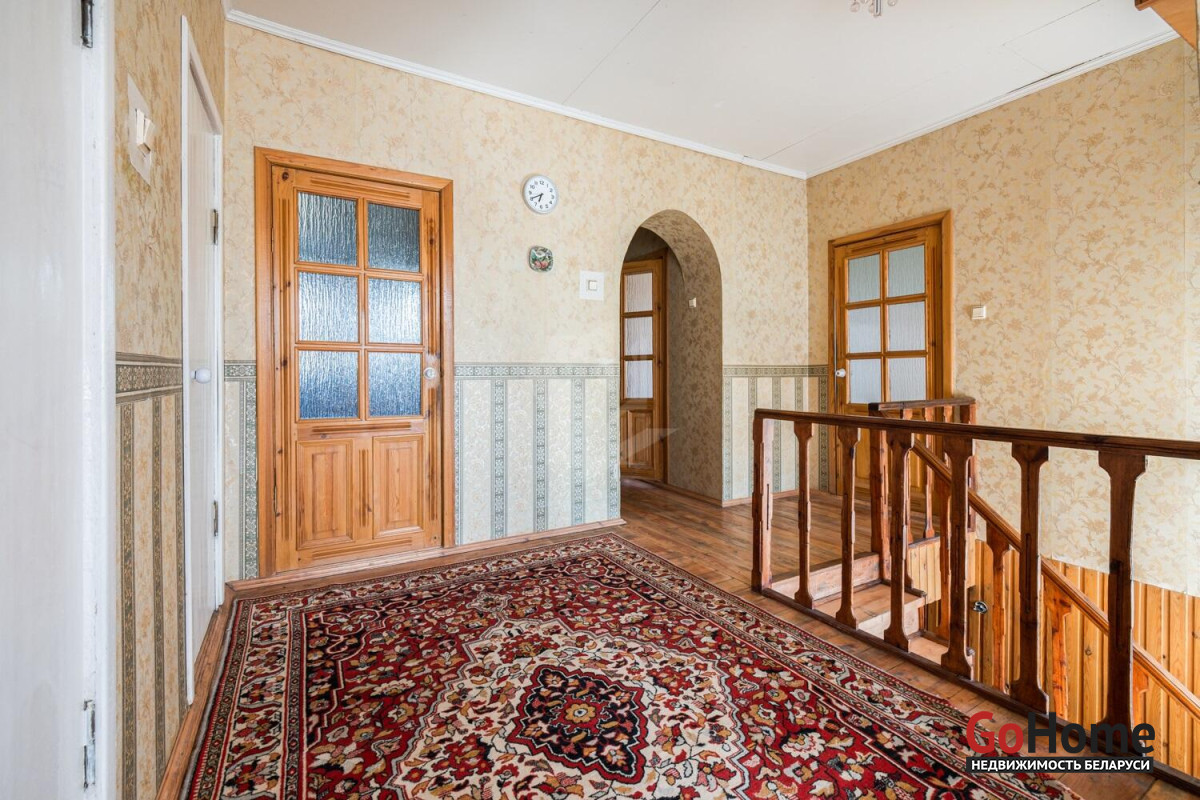 Дом:— На первом этаже расположены зал с камином, спальня, кухня 16,7 м2 и санузел.— Второй этаж: 4 комнаты, санузел и гардеробная.— Подвал, гараж, веранда, сарай, колодец.— Полы деревянные, крыша — металлическая.— На участке также расположена небольшая уютная баня для отдыха.