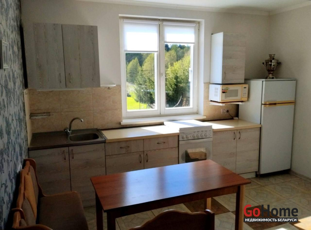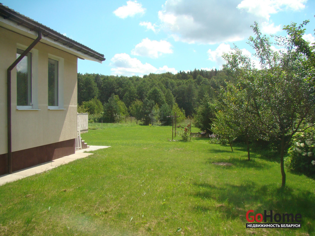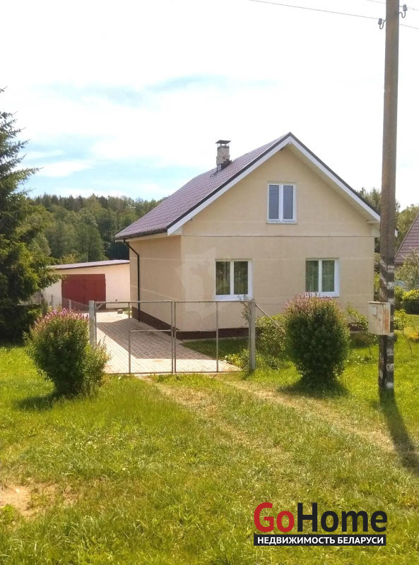 Новый дом, блочный, утеплён минватой 8см, покрыт декоративной штукатуркой, окрашен, крыша - металлочерепица. Имеется подвал 15м.кв. Дом пригоден для зимнего проживания, первый этаж 88 кв.м. отапливается печкой. Прихожая, кухня, гостиная, две спальни и туалет с душем. Второй этаж мансардный 50 кв.м. имеет две просторные комнаты. Дом полностью готов к проживанию, подведены свет, вода холодная и горячая (бойлер 100л), местная канализация.На кухне теплые полы от электричества.На территории имеется гараж 35 м.кв., со смотровой ямой. В гараже сделана вся разводка света, смотровая яма с подсветкой. Имеется недостроенная баня. Участок 15 соток, огорожен забором из сетки рабица. На участке имеются плодоносящие деревья: яблони, груши, сливы, вишни. Кусты смородины, малины, голубики, ежевики, виноград и клубника. Земля плодородная. За участком имеется водоем в котором водятся бобры. За водоемом лес с грибами. В округе имеется ещё несколько водоемов, в том числе озеро Волма, в них можно искупаться и порыбачить. Место тихое, спокойное с низкой плотностью застройки. Рядом база отдыха "Якутские горы" и самая высокая точка Беларуси. Транспортное сообщение: в пяти минутах ходьбы автобус и маршрутка.
