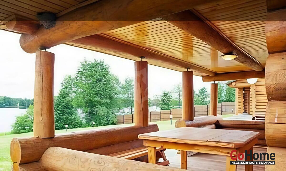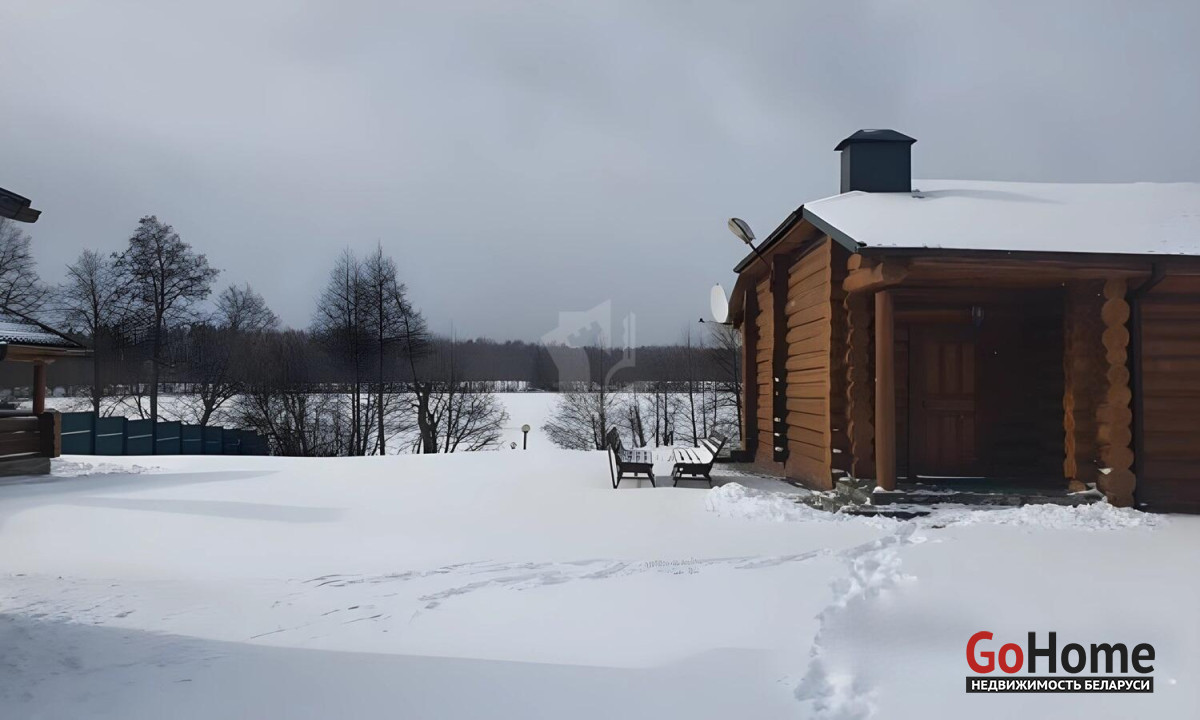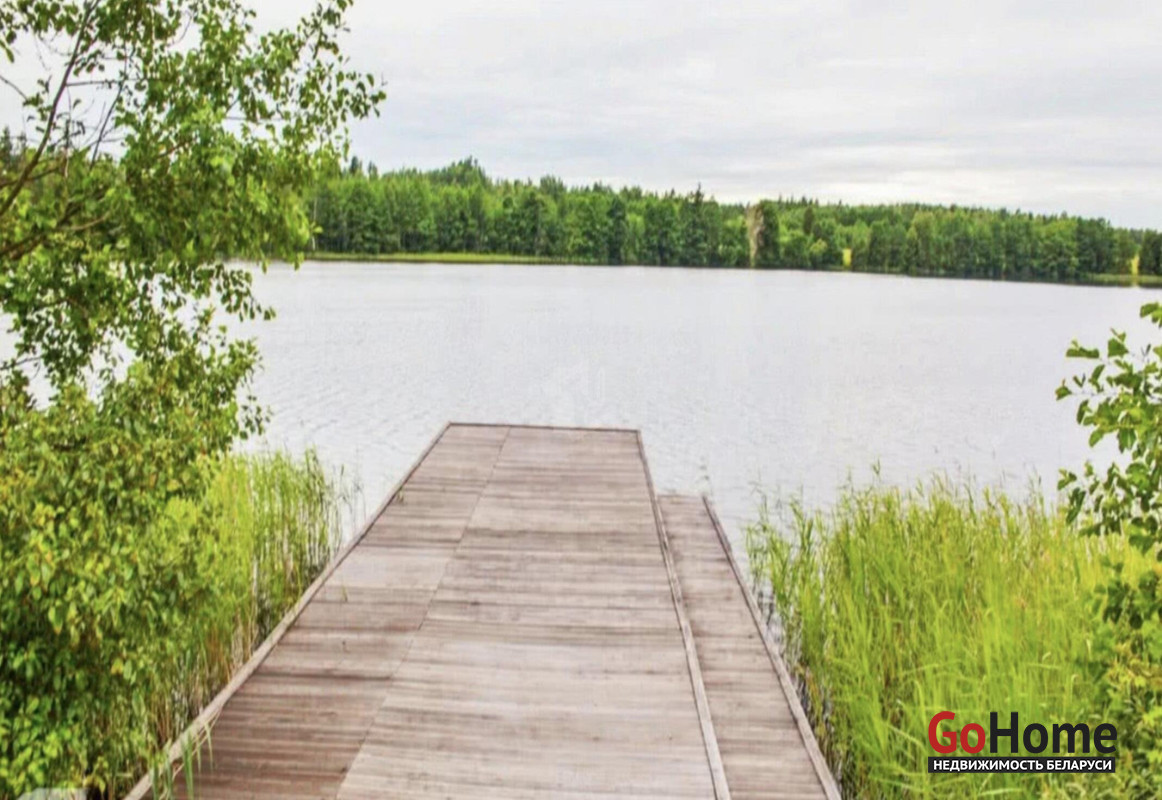 Гараж и баня расположены отдельно от дома. Есть терраса, с которой открывается потрясающий вид на озеро и лес.