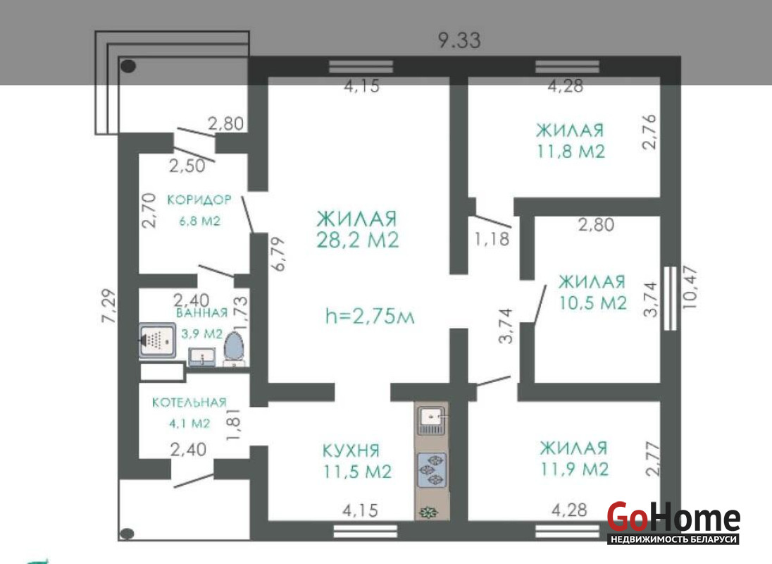 Дом оборудован всеми необходимыми коммуникациями: