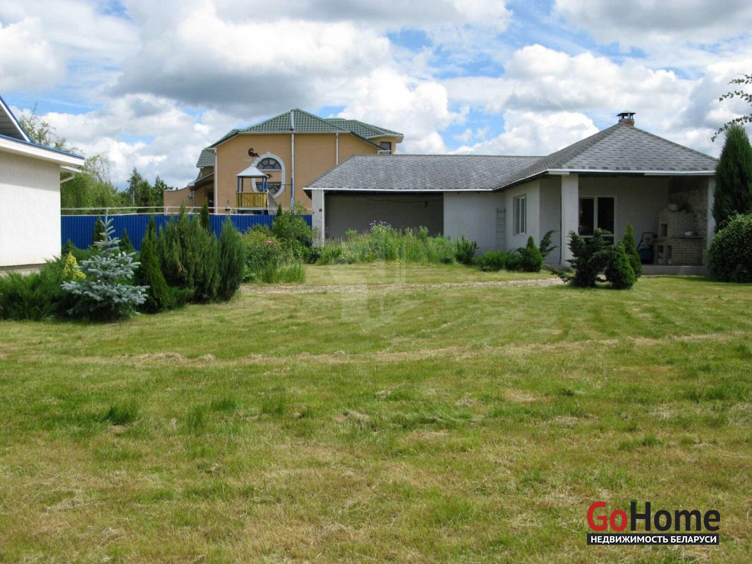 Участок 15 соток, в частной собственности, кроме основного дома есть гостевой дом с баней, и барбекю. Весь участок огорожен забором из метало-профиля, по кругу обсажен туями, и можжевельником. Выполнены тротуарные дорожки, зоны отдыха. Основной и гостевой дом окрашен в один стиль и выполнен из одних компонентов.