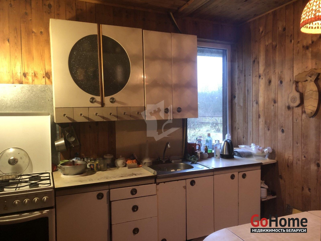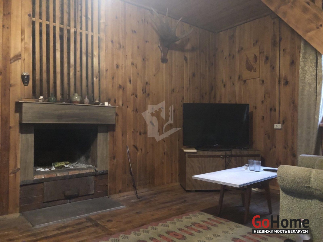 Дом каркасный, внутри отделан натуральным деревом. В доме три комнаты, кухня. Есть просторный гараж.