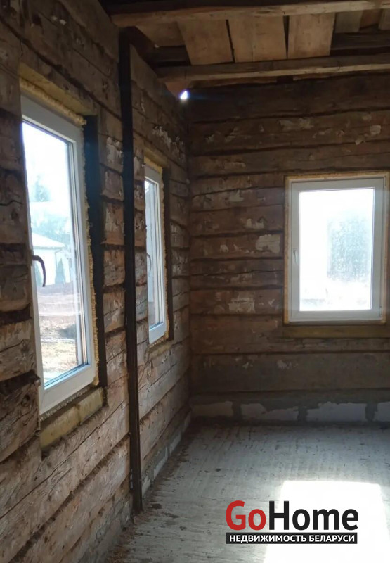 Продам дом из бревен диаметром более 40см, построенный на монолитном фундаменте. Выполнена стяжка пола. Вставлены евроокна и двери. Договор на электроснабжение предусматривает возможность электрообогрева. Газ, водопровод, канализация проходят по улице.