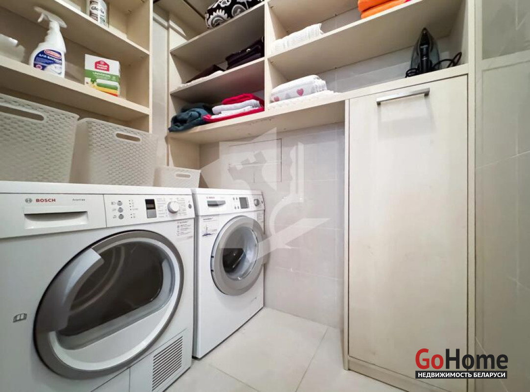 Квартира оборудована всем необходимым для комфортной жизни. В отделке использованы качественные материалы. На полу керамогранит, полы с подогревом. Кухня со встроенной техникой: холодильник и морозильная камера, посудомоечная машина, варочная панель, духовой шкаф. Есть отдельно выделенная постирочная, оборудованная сушильной и стиральной машинами Вosh. Качественная сантехника, есть бойлер для подогрева воды.