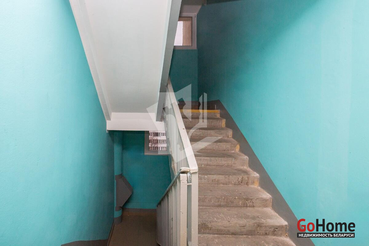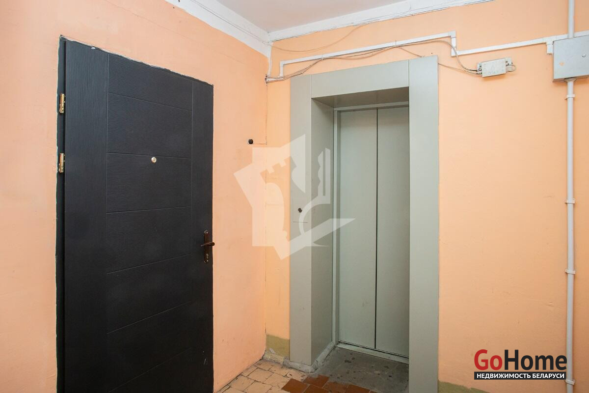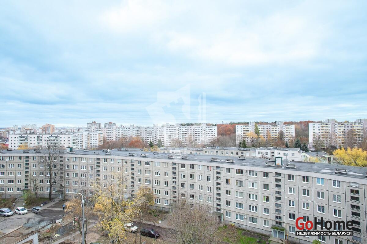 Удобный 8 этаж из 9, пассажирский лифт. Окна с видом на двор, парковку, зеленую зону, вдалеке виднеются городские пейзажи и Минск-Арена.