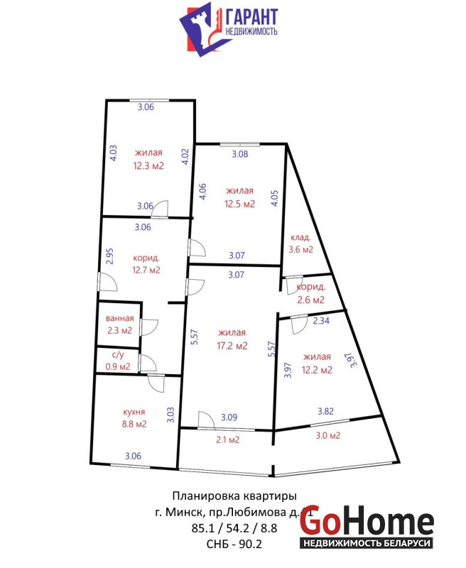 Площадь указана по СНБ.