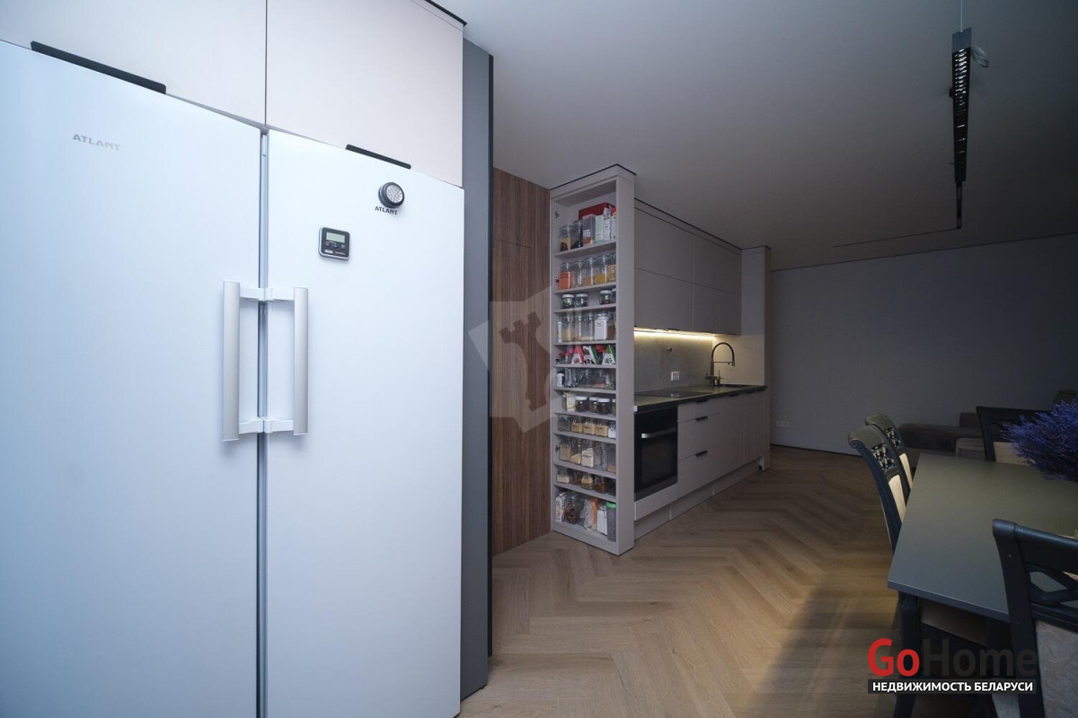 Квартира продается полностью с мебелью, как на фото, и техникой на кухне: посудомоечная машина, духовой шкаф, холодильник и морозильник