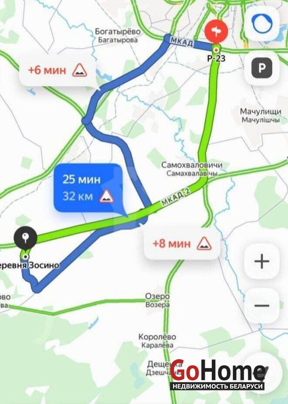 Отличная локация: 25 минут до МКАД по Брестскому или Слуцкому шоссе – без пробок! Деревня Зосино с развитой инфраструктурой: дороги чистят зимой, удобный выезд даже в снегопад. Большинство жителей работают в Минске – спокойная и ухоженная территория.