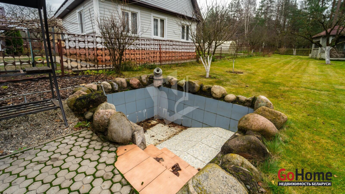 На участке – отличная беседка где можно проводить время с гостями. Также есть зона барбекю с мангалом и облегченным павильоном, прекрасная бревенчатая баня со всеми удобствами и купелью. Дорожки выложены тротуарной плиткой.
